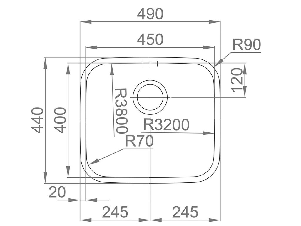Nerezový podstavný dřez LAGUNA 490 V 0,8mm leštěný s velkou výpustí.