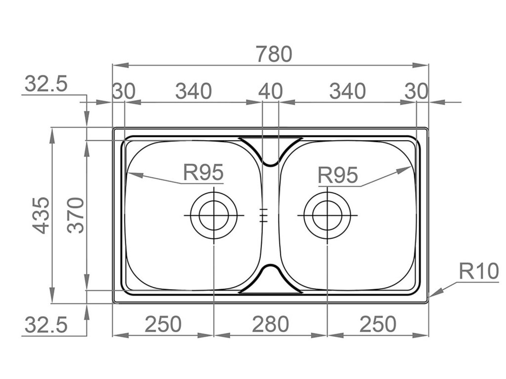 - Rozměr dřezu 780 x 435 mm