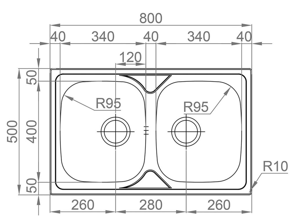 Rozměr dřezu 800 x 500 mm a hloubka 160 mm. Je určen pro skříňku od 800 mm. Záruka 15 let.
