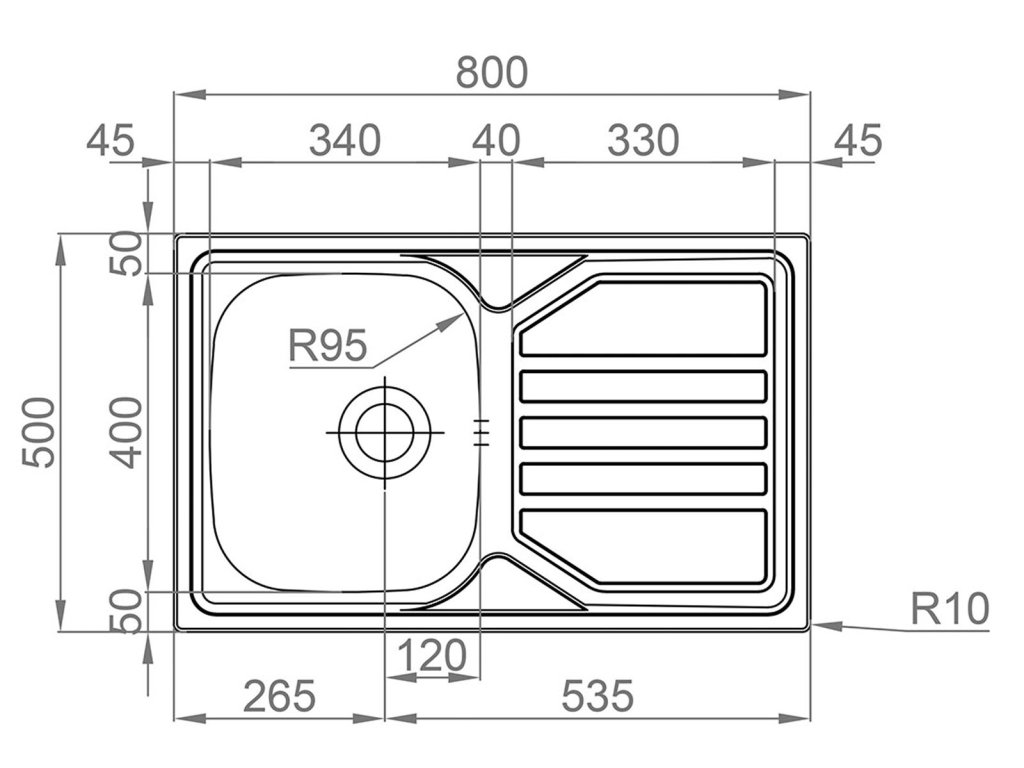 • Nerezový dřez Okio 800 V 0,7mm leštěný se sítkovou výpustí