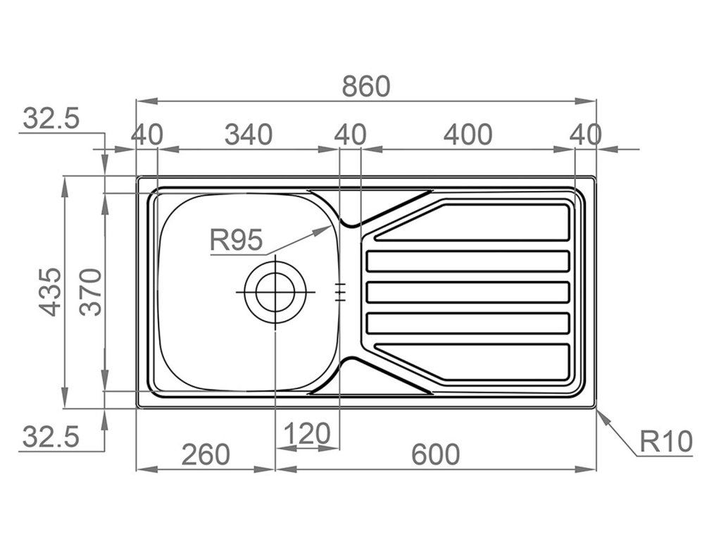 - Rozměr dřezu 860 x 435 mm