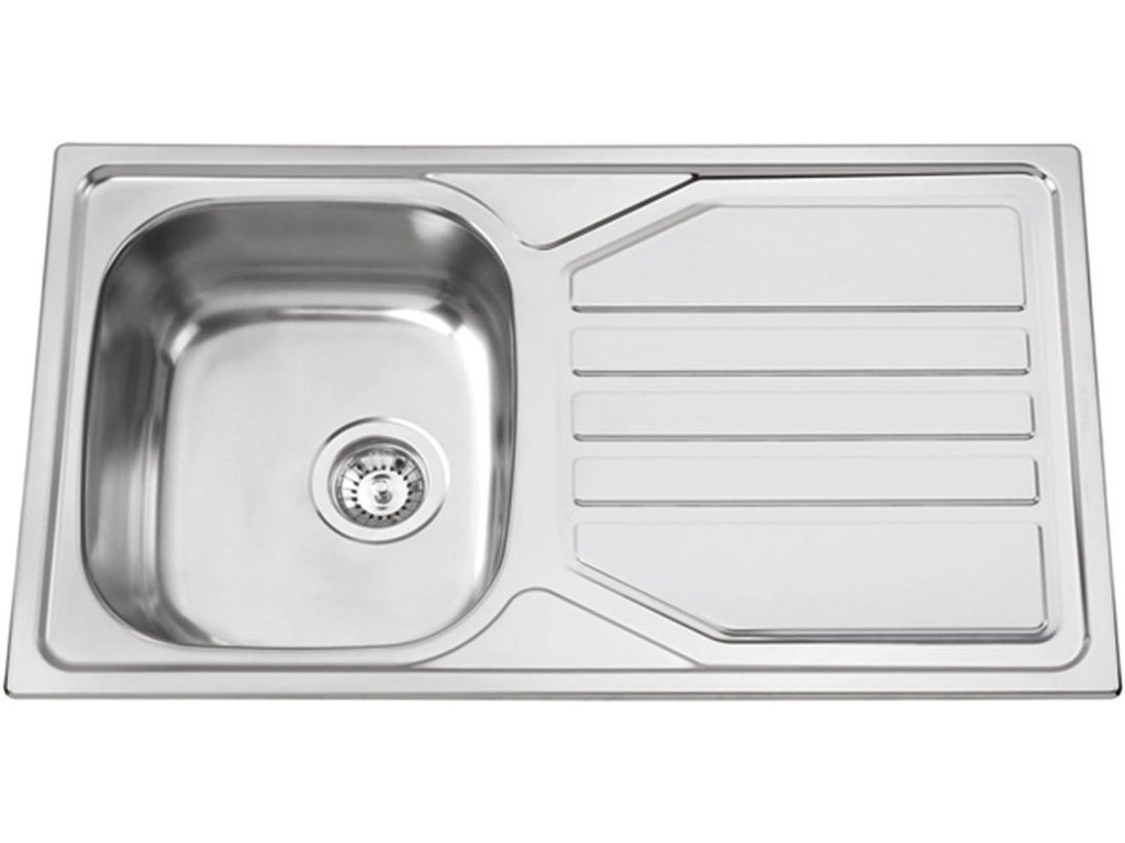 Nerezový dřez s odkapem Okio 860 XL V 0,6mm se sítkovou výpustí.