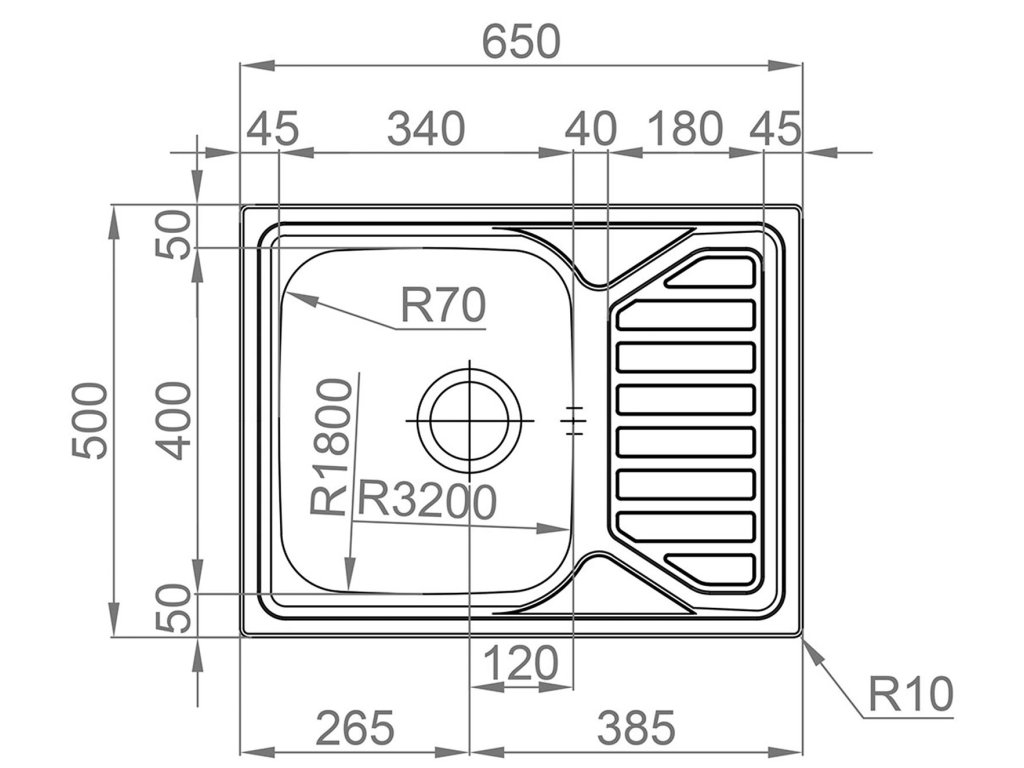 Rozměr dřezu 650 x 500 mm a hloubka 200 mm. Vanička je svařovaná. Je určen pro skříňku od 450 mm. Záruka 15 let.
