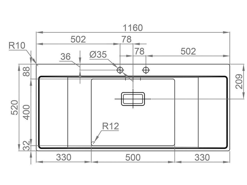 • Rozměr dřezu 1160 x 520 mm