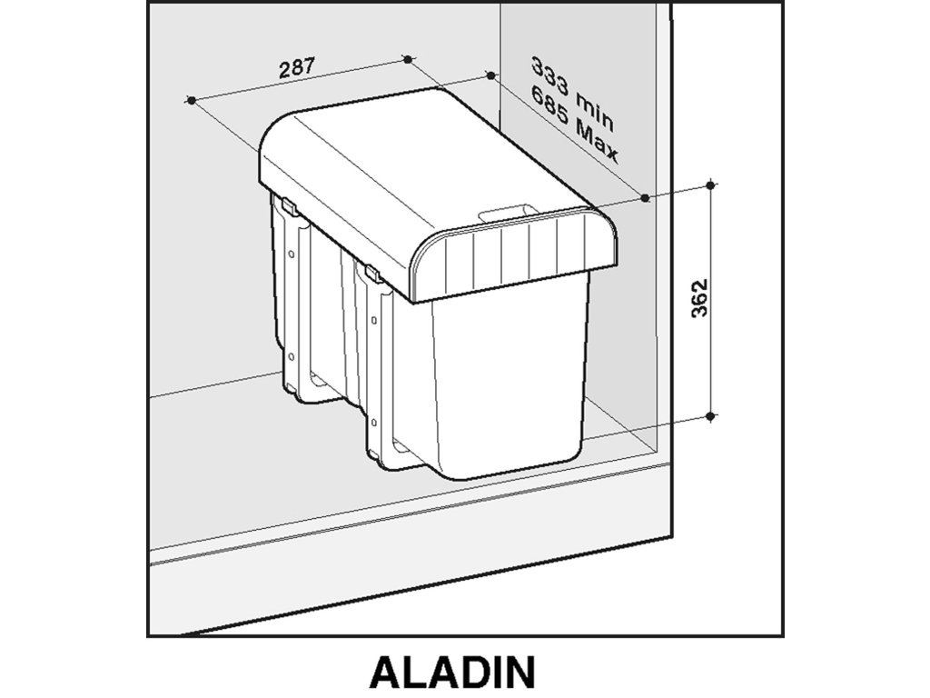 Náš Odpadkový koš ALADIN 40 1x16 l je navržen tak, aby byl plně integrovaný do kuchyňských skříněk či šuplíků, což umožňuje maximální využití prostoru a zajišťuje estetický vzhled vaší kuchyně.