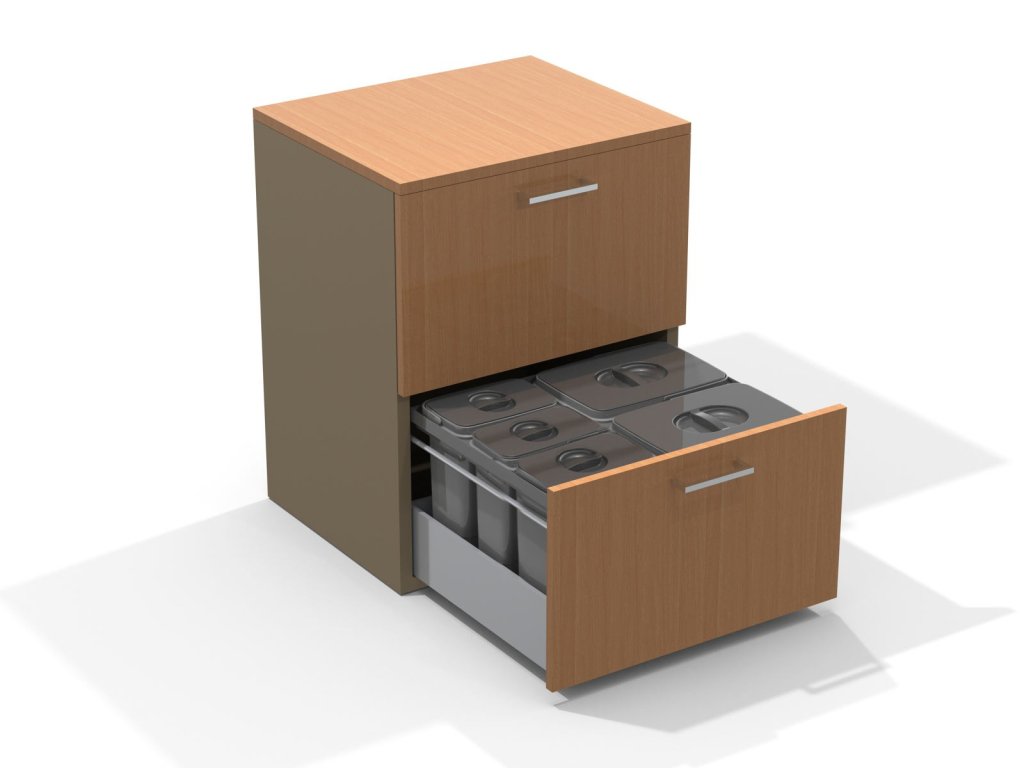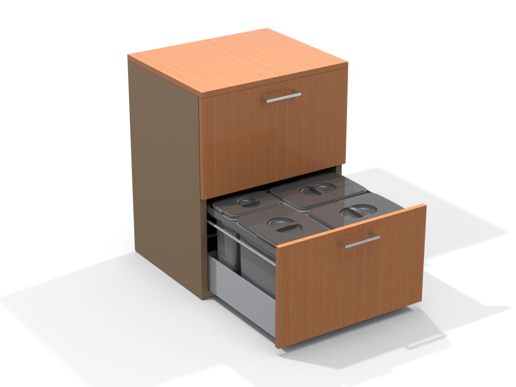 Náš Odpadkový koš JAZZ 600 2x15 l + 3x7 l je navržen tak, aby byl plně integrovaný do kuchyňských skříněk či šuplíků, což umožňuje maximální využití prostoru a zajišťuje estetický vzhled vaší kuchyně.