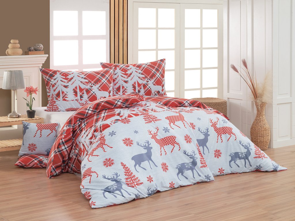 Orfeo Bavlna deluxe 1x 140/220, 1x 70/90 - Materiál: 100% bavlna Povlak na polštář i na přikrývku zachycuje na vrchní straně zimní vzor s motivem jelenů, povlak na polštář zdobí na vrchní straně malé logo "M" v pravém dolním rohu. Spodní stranu povlečení tvoří zjednodušený károvaný vzor bez motivu jelenů, zdobený sněhovými vločkami. Povlečení je opatřeno komfortním zipovým uzávěrem.Doplňkové parametry