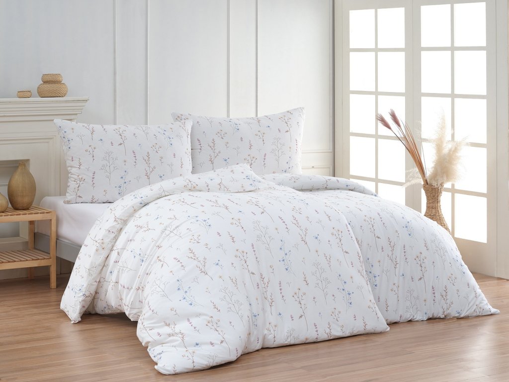 Paloma 025 Mako jersey 1x 140/200, 1x 70/90 - Povlečení Paloma Objevte dokonalé bavlněné povlečení, které vás nadchne jedinečnou hebkostí a potěší skromnými nároky na údržbu. Znáte Mako jersey? Mako jersey je tvarově stálý úplet ve vysoké gramáži, vyrobený z pečlivě vybraných přízí 100% egyptské bavlny. Látka je prodyšná, velmi dobře absorbuje vlhkost a je mimořádně hebká na dotek. Výhodou tohoto materiálu je, že nevyžaduje žehlení. Pro novou kolekci ložního povlečení Mako jersey jsme pečlivě vybírali motivy, které tomuto pružnému materiálu sluší. Vzor Paloma s motivem drobných bylinek na sněhově bílém podkladu vnese do vaší ložnice jemný rustikální nádech. Povlečení je opatřeno komfortním zipovým uzávěrem, u povlaku na polštář je zip umístěn na spodní straně o délce 90 cm. Set povlečení je zabalen v praktickém látkovém sáčku ze stejného materiálu jako ložní povlečení. Údržba: povlečení ve variantě Mako jersey doporučujeme prát při teplotě 40°C, sušení je nejvhodnější na ploše (zavěšení na šňůře je vhodné až po částečném usušení, aby nebyla látka příliš těžká). U povlečení v materiálovém provedení Mako jersey neprovádíme úpravy rozměrůDoplňkové parametry