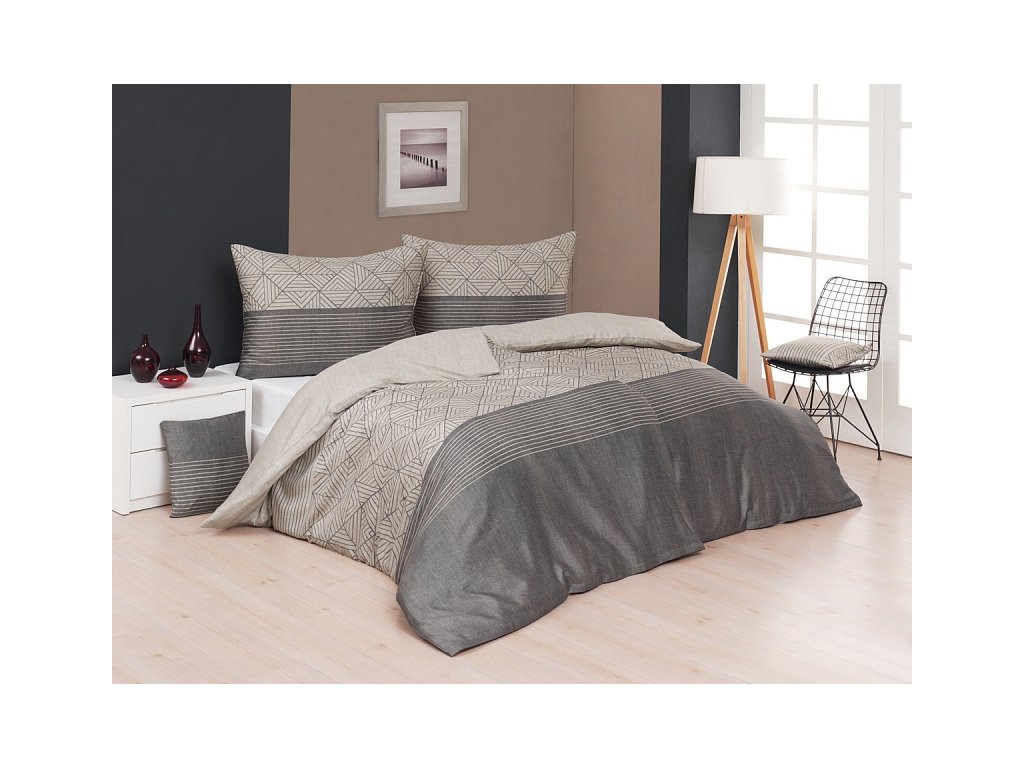 Pietro Krep deluxe 1x 140/220, 1x 70/90 - Zařiďte si ložnici ve znamení střídmé elegance s bavlněným povlečením Pietro. Jemný geometrický vzor v kombinaci šedých a přírodních béžových tónů dodá interiéru hřejivý nádech. Povlak na přikrývku je z obou stran stejný, povlak na polštář zachycuje z každé strany jinou část vzoru (spodní strana povlaku je celobéžová se vzorem). Povlečení je opatřeno komfortním zipovým uzávěrem. Povlaky na polštářky 40/40 cm se šijí ze stejné látky jako ložní povlečení, vzhledem k rozmanitosti vzoru může být každý povláček jiný.Doplňkové parametry