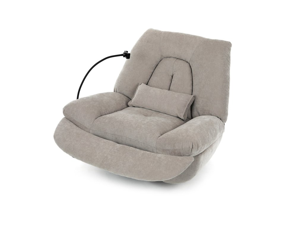 Polohovací elektrické křeslo, krémová látka, držák telefonu, uložný box, zabudované ovládání, USB-A a USB-C, rotace do 2 TV-7081 LAN2