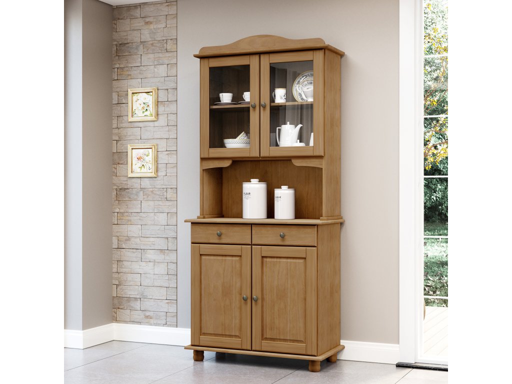 Příborník s nástavcem 2 dveře RUBI dub - materiál masiv borovice, barevné provedení dub v dolní části 2 dveře, 2 zásuvky s kovovými pojezdy v horní části dvoje prosklené dveřeBuďte první, kdo napíše příspěvek k této položce.