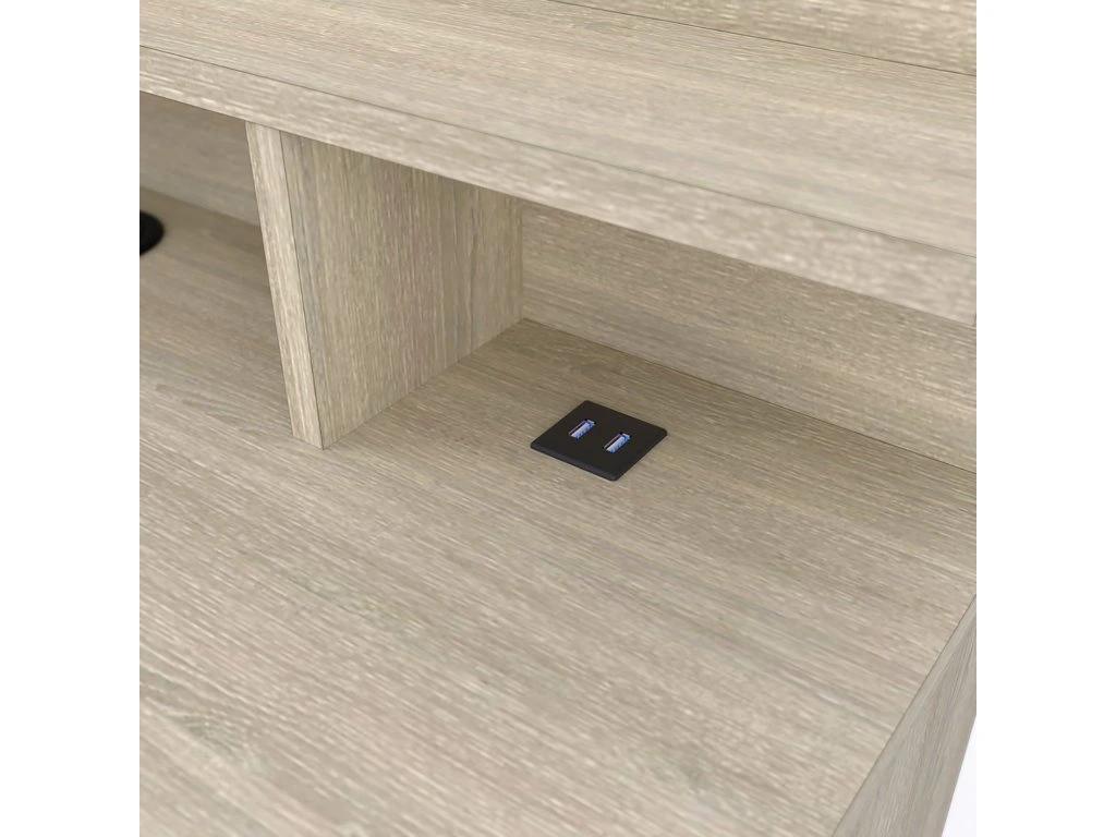 Tento stůl disponuje 1 dvířkem a 1 zásuvkou s kovovými pojezdy. Na zadní části stolu se nachází police a závěsné pružné lanové systémy. V pracovní desce stolu se nachází průchodka na kabely a zásuvka se 2 USB porty, které poskytují napájení s napětím 5V DC. Tato funkce umožňuje současné nabíjení dvou zařízení s výstupem 1A nebo jednoho zařízení s výstupem 2A, jako jsou mobilní telefony, tablety, chytré hodinky a další.