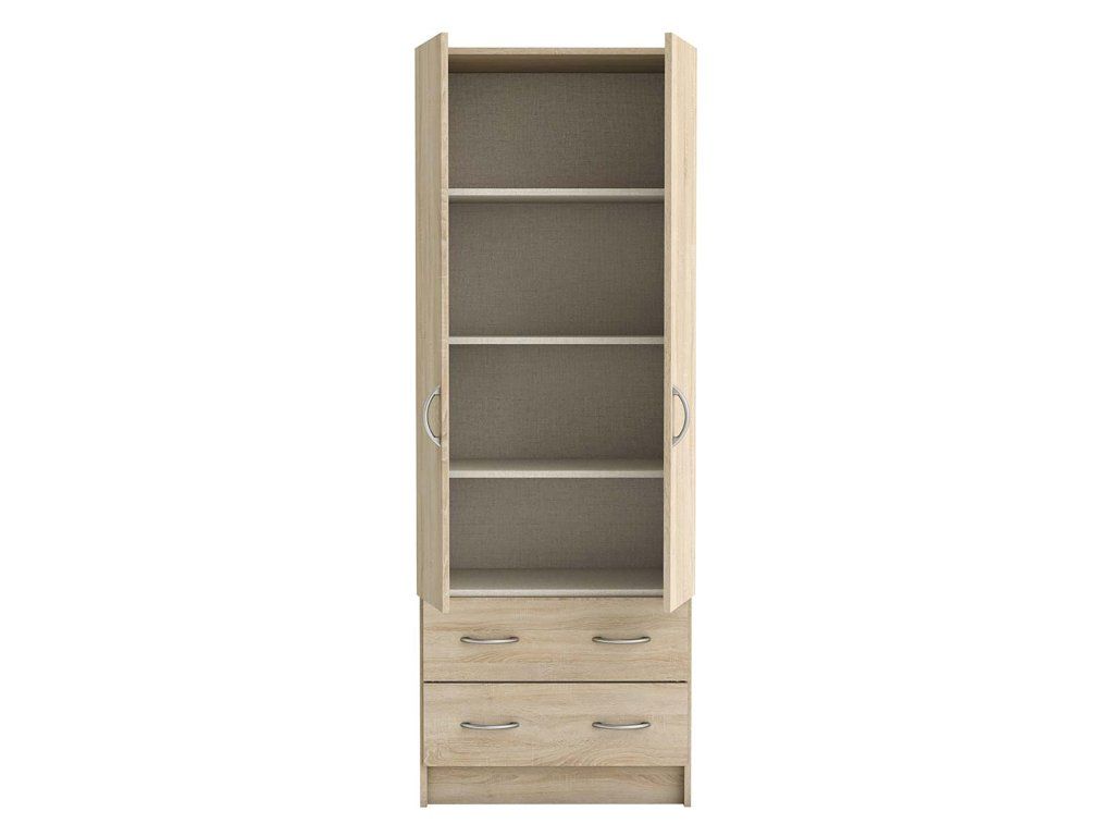 Skříň 2dveřová 107862 dub - barevné provedení dub Sonoma 3 police, 2 velké zásuvky s kovovými pojezdyDoplňkové parametry