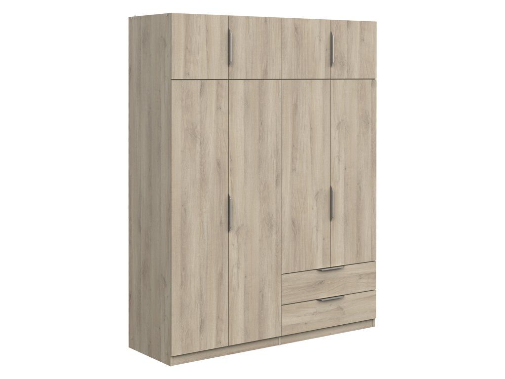 Skříň 8 dveří GHOST dub - barevné provedení dub Kronberg prostor dělený na poloviny, v levé části šatní tyč v pravé části 2 police a 2 zásuvky s kovovými pojezdy v horní části dva úložné prostory maximální nosnosti uvedeny v návodu k montážiDoplňkové parametry