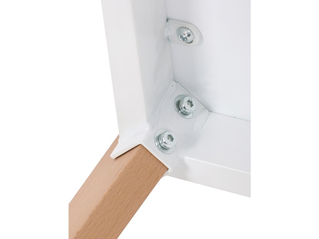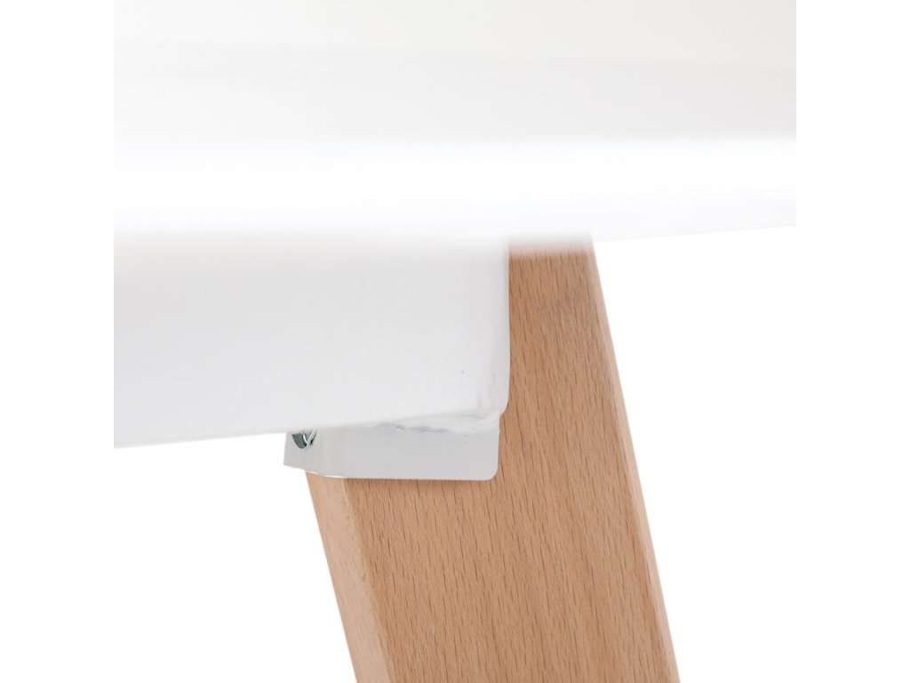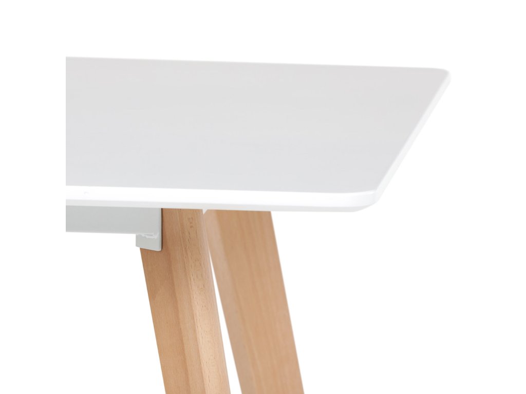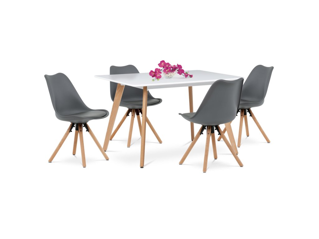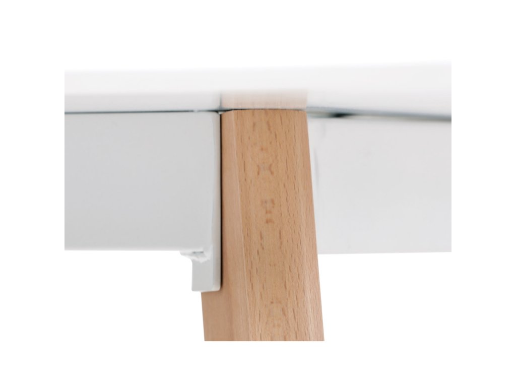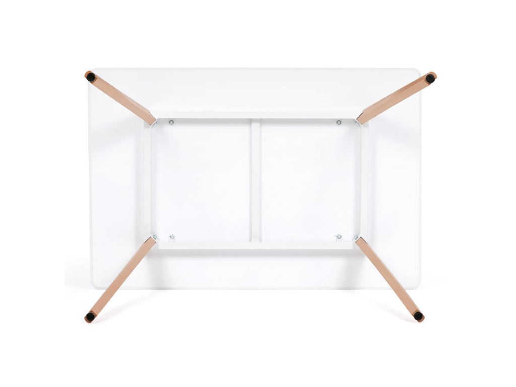 Stůl jídelní, 120x80x74 cm, MDF, masiv / kovová konstrukce, bílá DT-313 WT - Jídelní stůl o rozměrech 120x80x74 cm kombinuje pevnou desku z MDF s matnou bílou povrchovou úpravou a nohy z masivního buku, které dodávají stabilitu a přírodní vzhled. Deska stolu je navržena s jemně zaoblenými rohy pro bezpečnost a pohodlí při používání. Masivní bukové nohy jsou vybaveny rektifikačními patkami, které umožňují vyrovnání nerovností podlahy a zajišťují stabilitu stolu. Matný lak na desce usnadňuje údržbu a odolává běžnému opotřebení. Stůl je pevný a vhodný pro každodenní použití v jídelnách i kuchyních.Doplňkové parametry