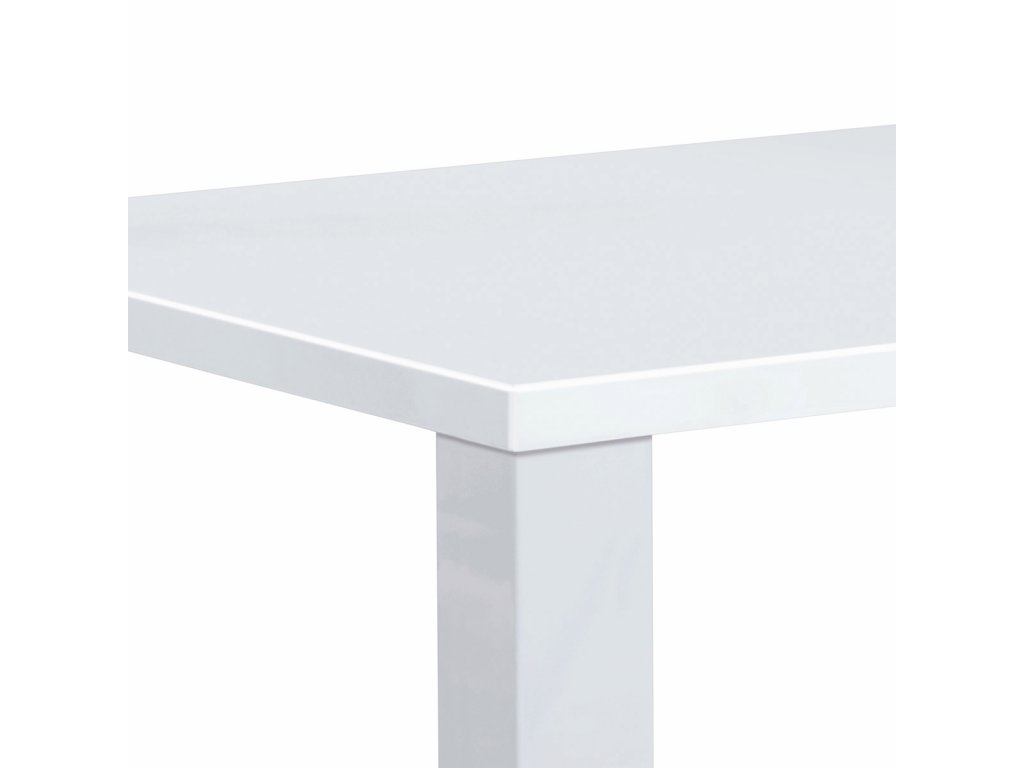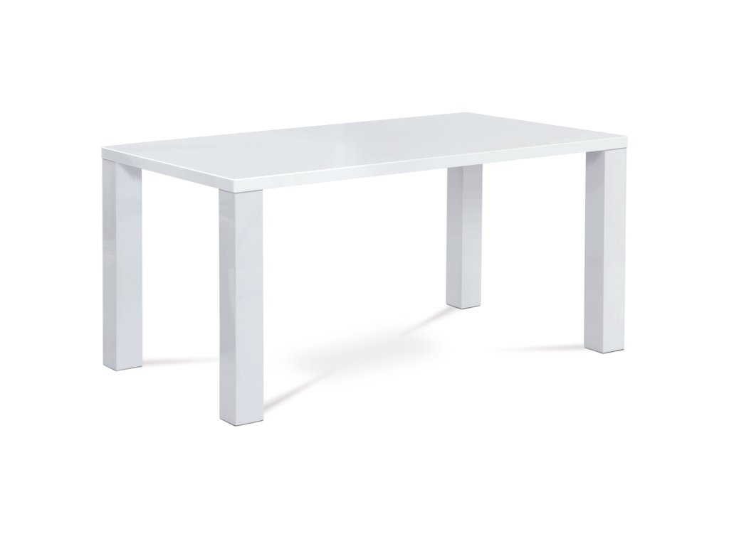 Stůl jídelní, 160x90x76 cm, MDF, vysoký lesk bílý AT-3008 WT - Jídelní stůl o rozměrech 160x90x76 cm je vyroben z MDF materiálu s povrchovou úpravou v lesklém bílém laku, který dodává moderní a svěží vzhled. Deska stolu je pevná a hladká s vysokým leskem, který usnadňuje údržbu a odolává běžnému opotřebení. Robustní nohy stolu jsou rovněž z MDF a zajišťují stabilitu a pevnost celé konstrukce. Zaoblené rohy desky přispívají k bezpečnosti a zároveň podtrhují minimalistický design. Stůl je vhodný pro každodenní použití v jídelnách i kuchyních, kde oceníte jeho jednoduchost a snadnou údržbu.Doplňkové parametry