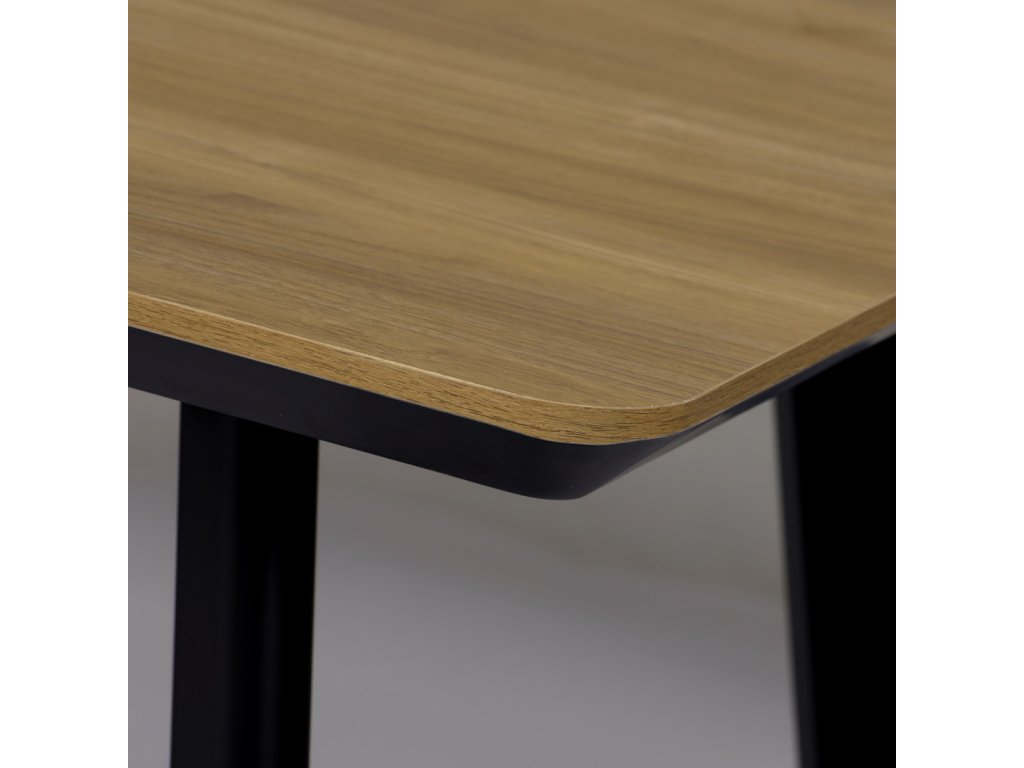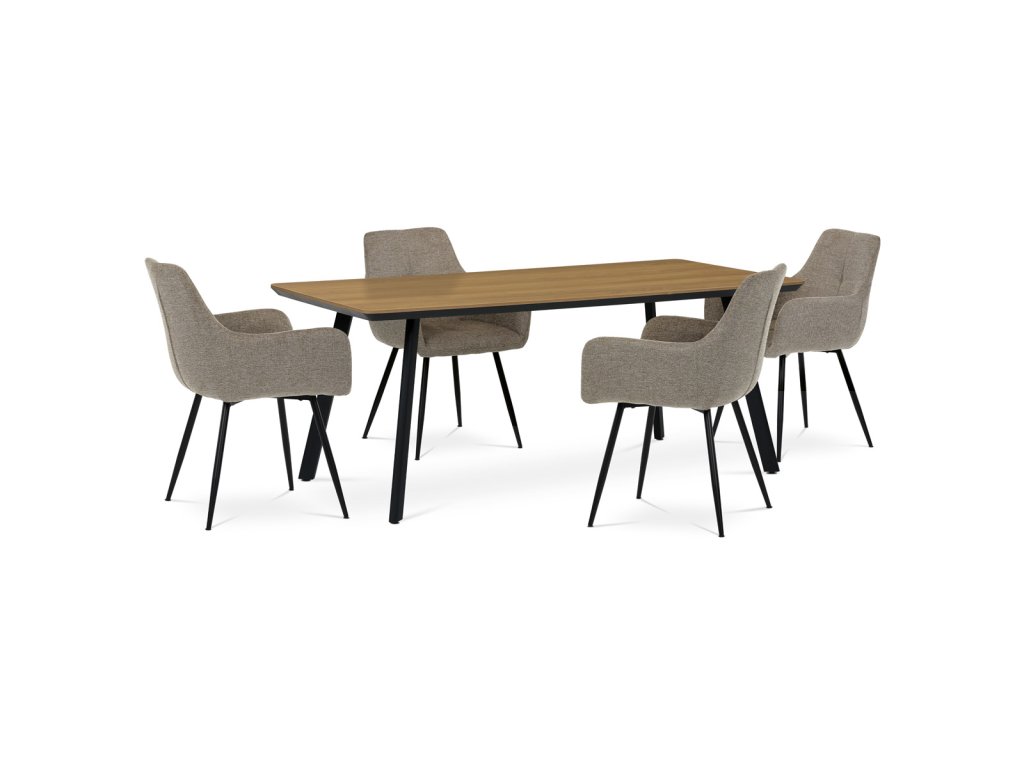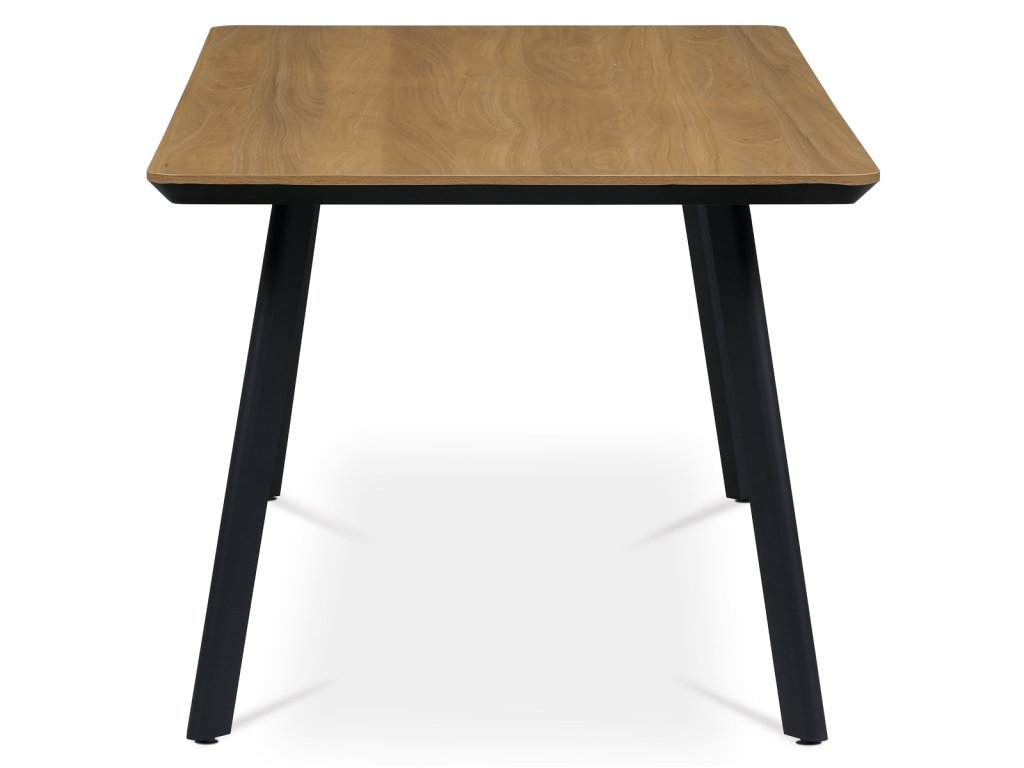 Stůl jídelní, 180x80x76 cm, MDF, kov, dekor dub s černou hranou, černá HT-533 OAK - Vstupte do světa moderního luxusu s naším jídelním stolem Autronic. Stůl, který je harmonickou kombinací industriálního stylu a elegantního designu, má sytě hnědou dýhovou desku, která napodobuje okouzlující vzory dubu. Obdélníkový tvar stolu nabízí dostatek prostoru pro všechny typy kanceláří nebo domácích jídelen a vytváří příjemnou atmosféru pro setkání a diskuse. Důraz na design se vztahuje i na robustní nohy zhmotněné z vysoce kvalitního kovu a natřené černou barvou, které tvoří výrazný kontrast k desce. Tento základ zaručuje stabilitu, což z něj činí odolnou volbu, která snadno odolá každodennímu používání. Náš jídelní stůl vnese do vašeho prostoru esenci modernosti díky stylizovaným nuancím a brilantním detailům. Tento výtvor společnosti Autronic, vybavený nejkvalitnějším materiálem MDF pro prodloužení životnosti, dokáže hladce spojit použitelnost s ostrou industriální aurou, což má za následek vznik kusu, který bude nejen sloužit svému účelu, ale vytvoří i estetické prohlášení.Doplňkové parametry
