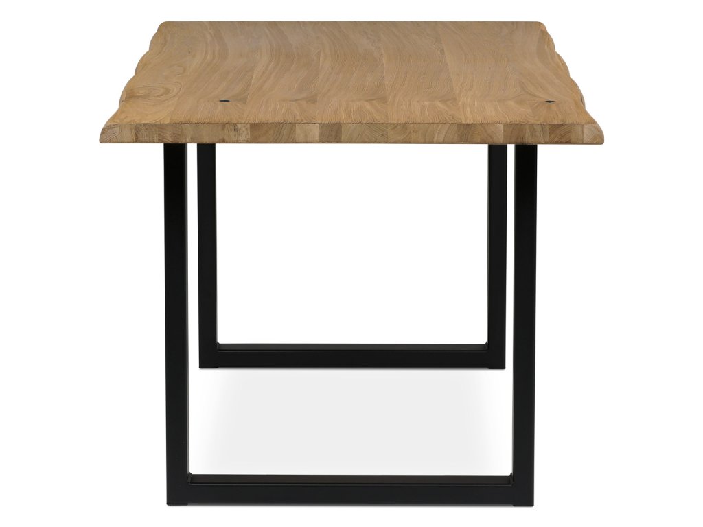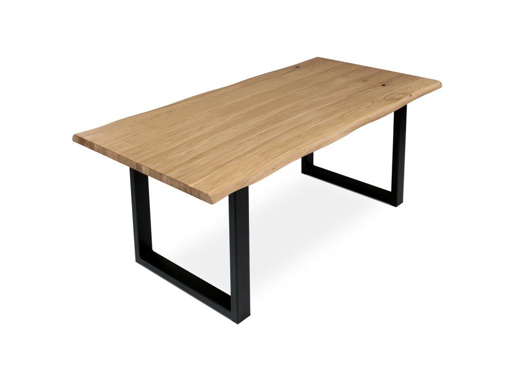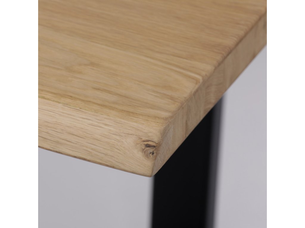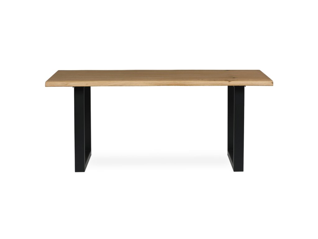 Stůl jídelní, 180x90x75 cm, masiv dub, kov, černá DS-U180 DUB - Jídelní stůl o rozměrech 180x90x75 cm je vyroben z masivního dubu s olejovaným povrchem, který zvýrazňuje přirozenou kresbu dřeva a zároveň usnadňuje údržbu. Masivní deska je pevná a stabilní, zajišťuje dlouhou životnost a odolnost proti běžnému opotřebení. Podnož tvoří robustní kovová konstrukce v černé barvě, která poskytuje vysokou stabilitu a moderní industriální vzhled. Stůl není rozkládací, což podtrhuje jeho jednoduchost a pevnost. Díky kombinaci přírodního dřeva a kovu se hodí do různých interiérů, kde oceníte kvalitu a nadčasový design.Doplňkové parametry
