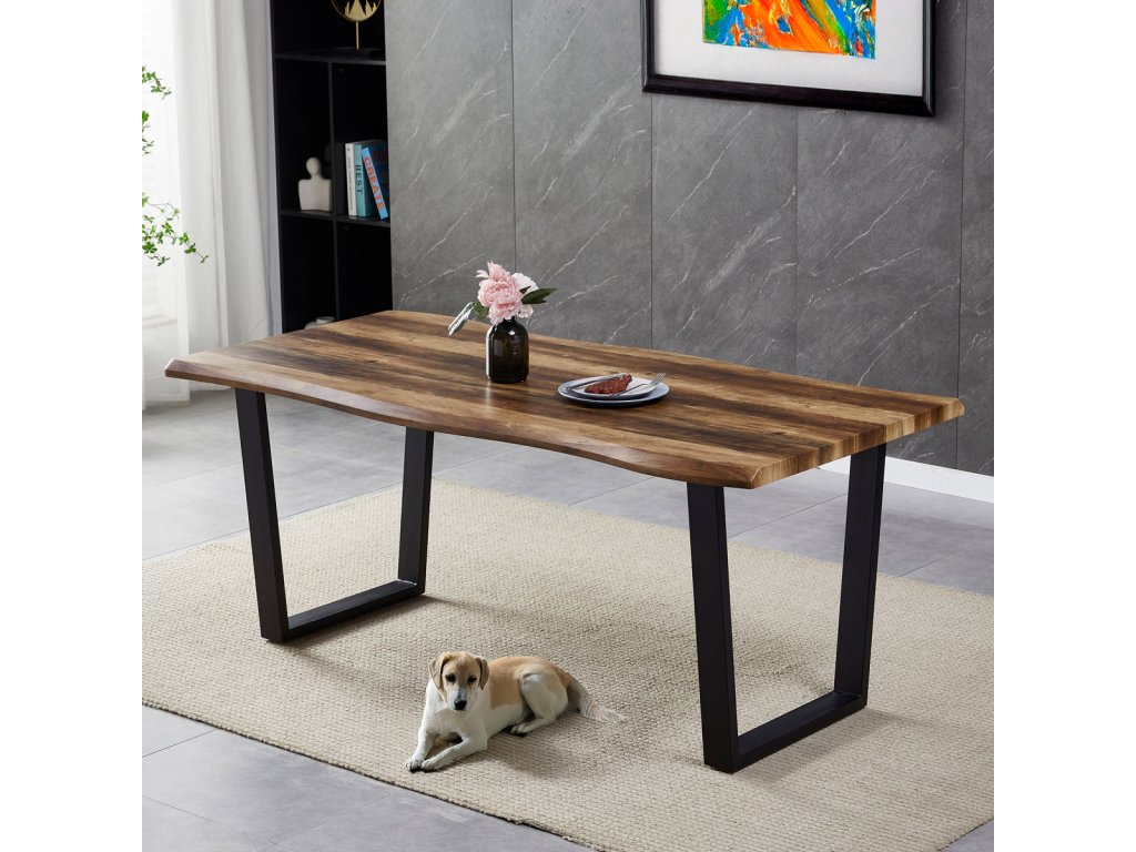 Stůl jídelní, 180x90x75 cm, MDF, kov, Old wood, černá HT-F4218 OLW - Jídelní stůl značky Autronic v industriálním stylu přinese do vaší jídelny výrazný designový prvek. Deska stolu v dekoru starého dřeva nabízí atraktivní strukturu a odolnost díky kvalitní MDF. Působivý vzhled je podtržen černými kovovými nohami, které poskytují stabilitu a vytvářejí moderní kontrast k odstínu starého dřeva desky. Atypický tvar desky dodává stolu originalitu, zatímco jeho pevná konstrukce zajišťuje dlouhou životnost. Tento stůl je ideální pro milovníky designu, kteří hledají spojení funkčnosti a stylu.Doplňkové parametry