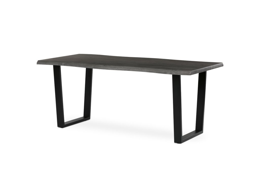 Stůl jídelní, 180x90x75 cm, MDF, kov, šedý dub, černá HT-F4218 GREY - Jídelní stůl značky Autronic v industriálním stylu přinese do vaší jídelny výrazný designový prvek. Deska stolu v dekoru divokého dubu s šedým povrchem nabízí atraktivní strukturu a odolnost díky kvalitní MDF. Působivý vzhled je podtržen černými kovovými nohami, které poskytují stabilitu a vytvářejí moderní kontrast k šedému odstínu desky. Atypický tvar desky dodává stolu originalitu, zatímco jeho pevná konstrukce zajišťuje dlouhou životnost. Tento stůl je ideální pro milovníky designu, kteří hledají spojení funkčnosti a stylu.Doplňkové parametry