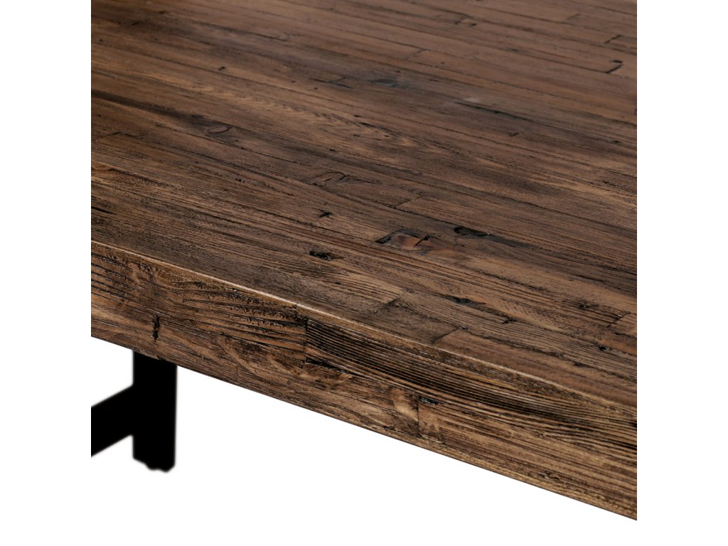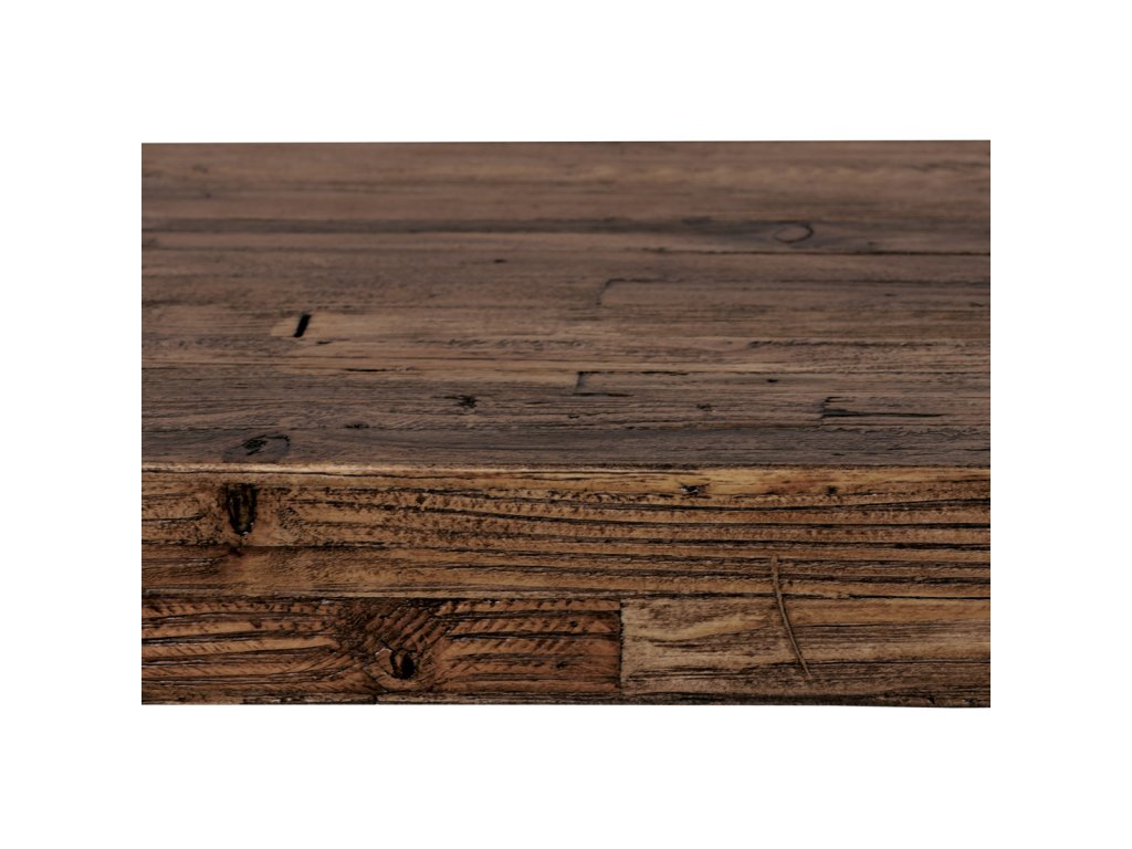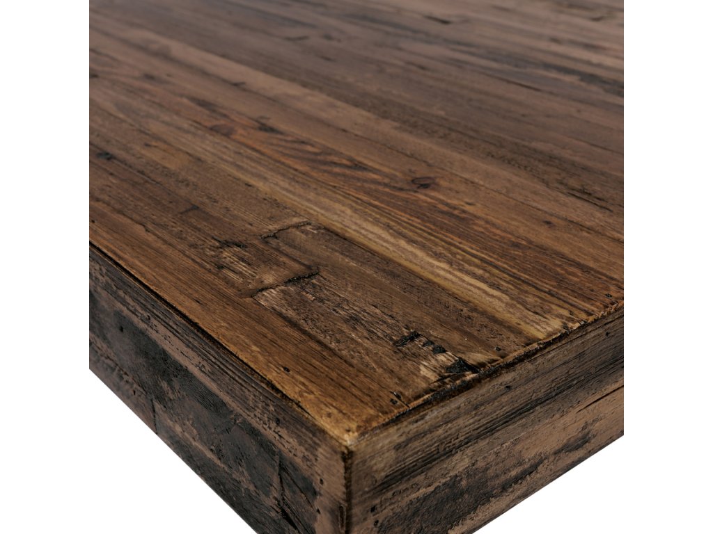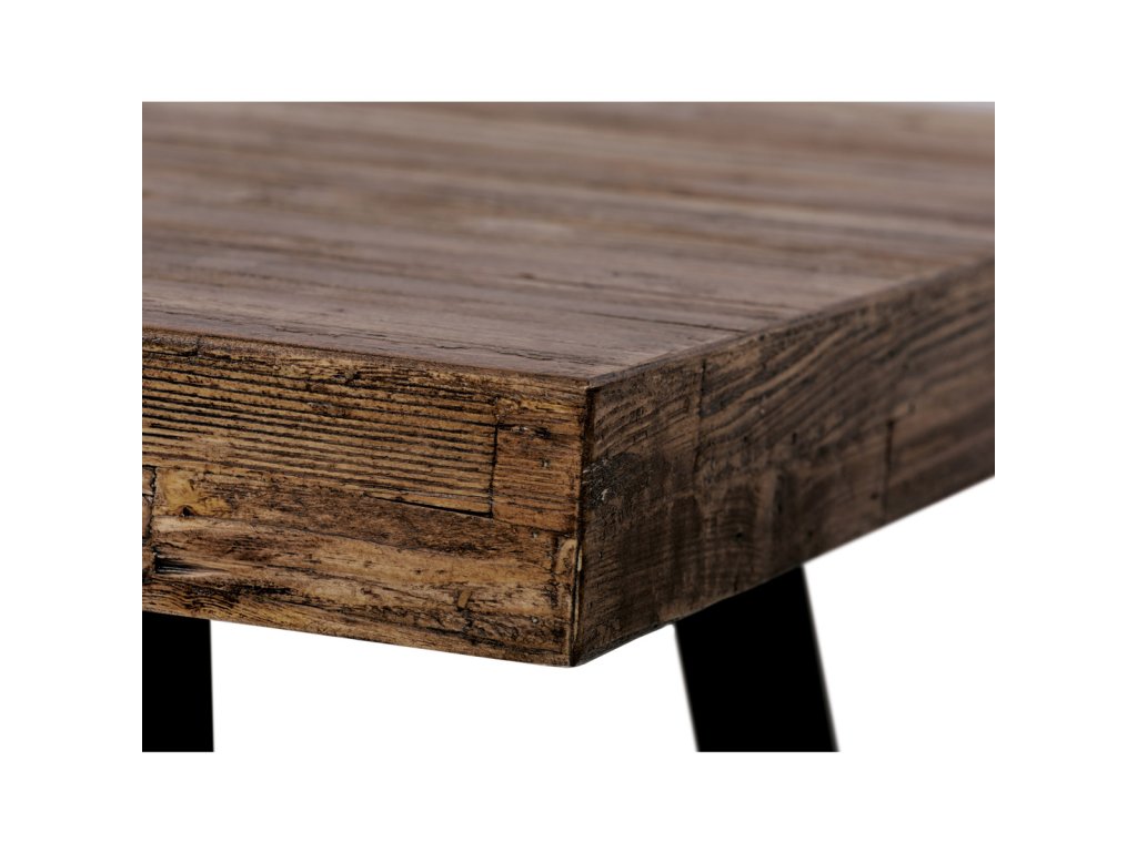 Stůl jídelní, 180x90x76 cm, masiv, kov, moření borovice, černá HT-536 PINE - Jídelní stůl o rozměrech 180x90x76 cm je vyroben z masivního borovicového dřeva s mořením v odstínu old wood, které zvýrazňuje přirozenou strukturu a kresbu dřeva. Deska stolu je robustní a pevná, což zajišťuje dlouhou životnost a odolnost proti běžnému opotřebení. Stabilní kovová podnož v černém provedení poskytuje pevnou oporu a stabilitu celému nábytku, přičemž její jednoduchý design doplňuje rustikální charakter masivní desky. Stůl je vhodný pro každodenní použití v jídelnách i kuchyních, kde oceníte kombinaci přírodního materiálu a moderního kovového prvku. Díky svým rozměrům nabízí dostatek prostoru pro pohodlné stolování i pracovní aktivity.Doplňkové parametry