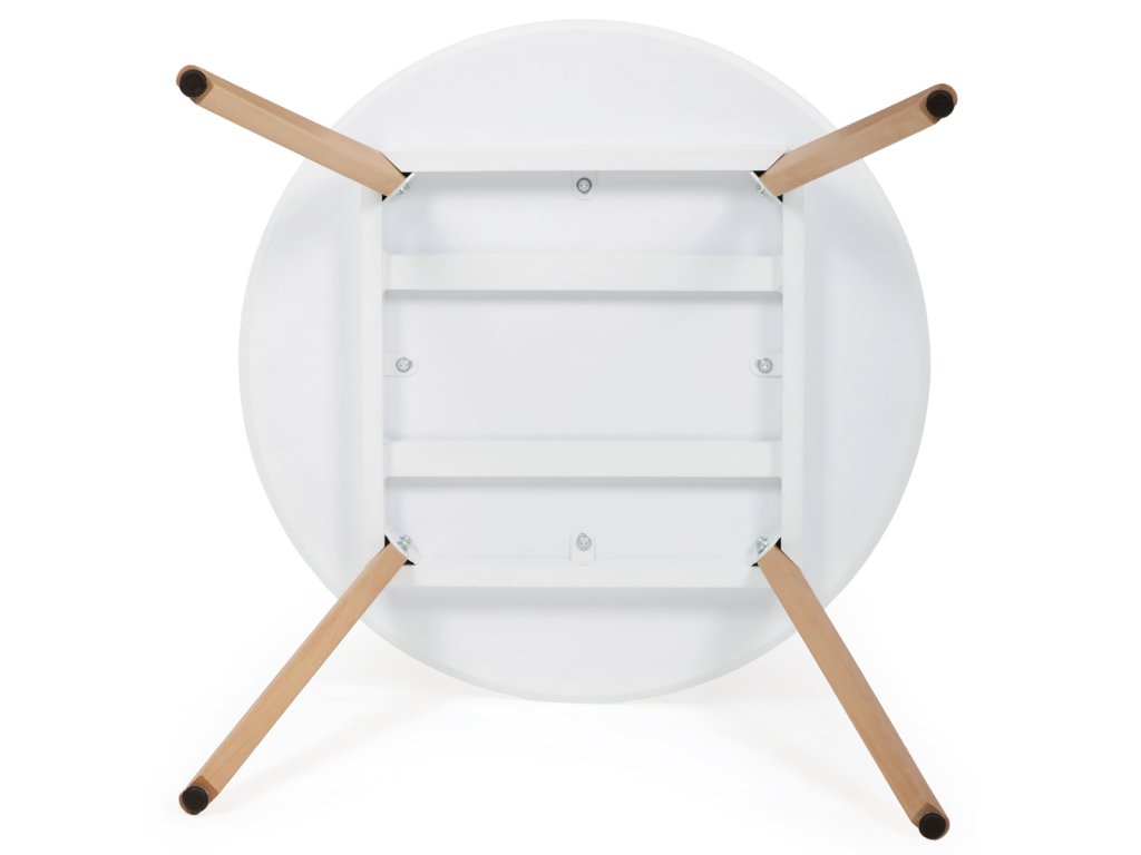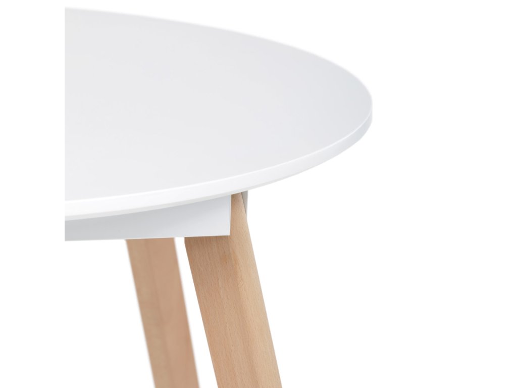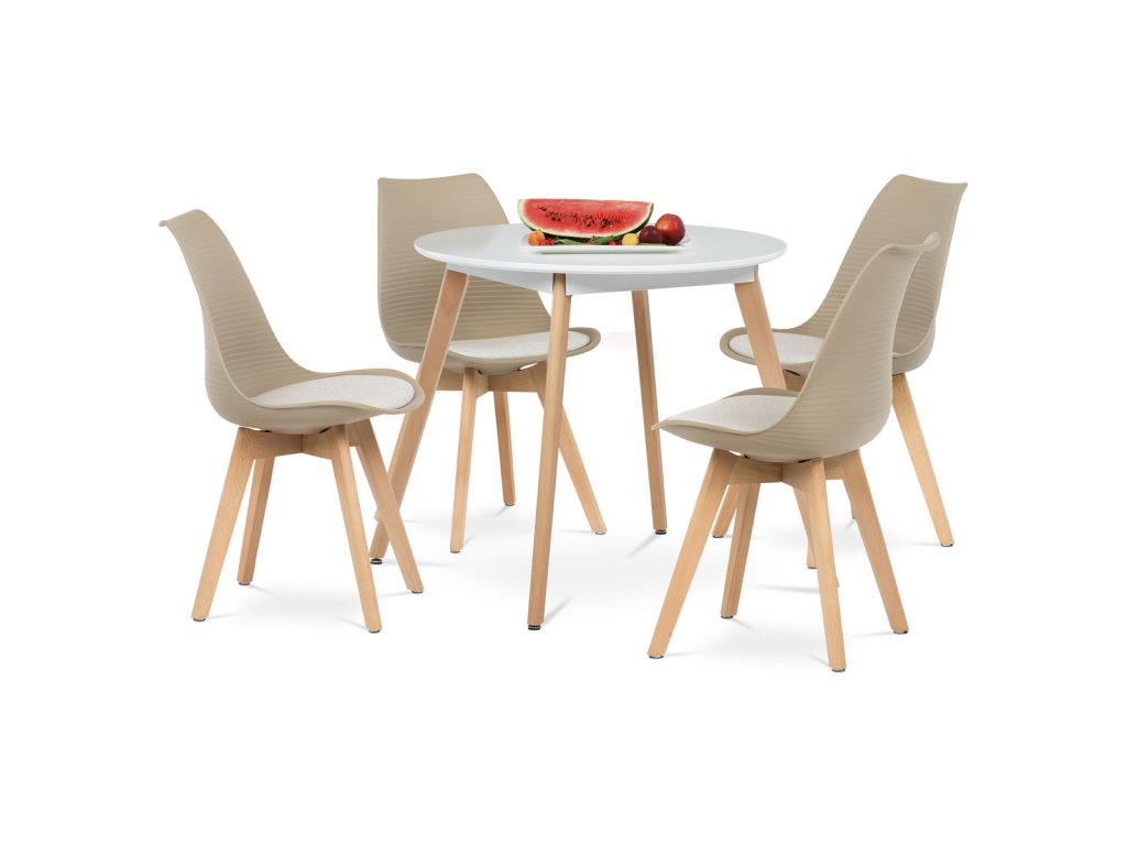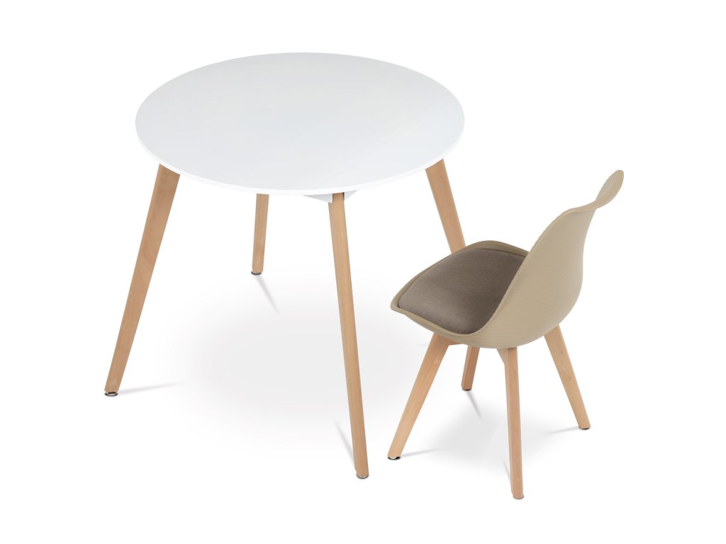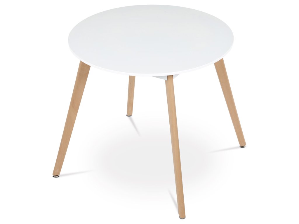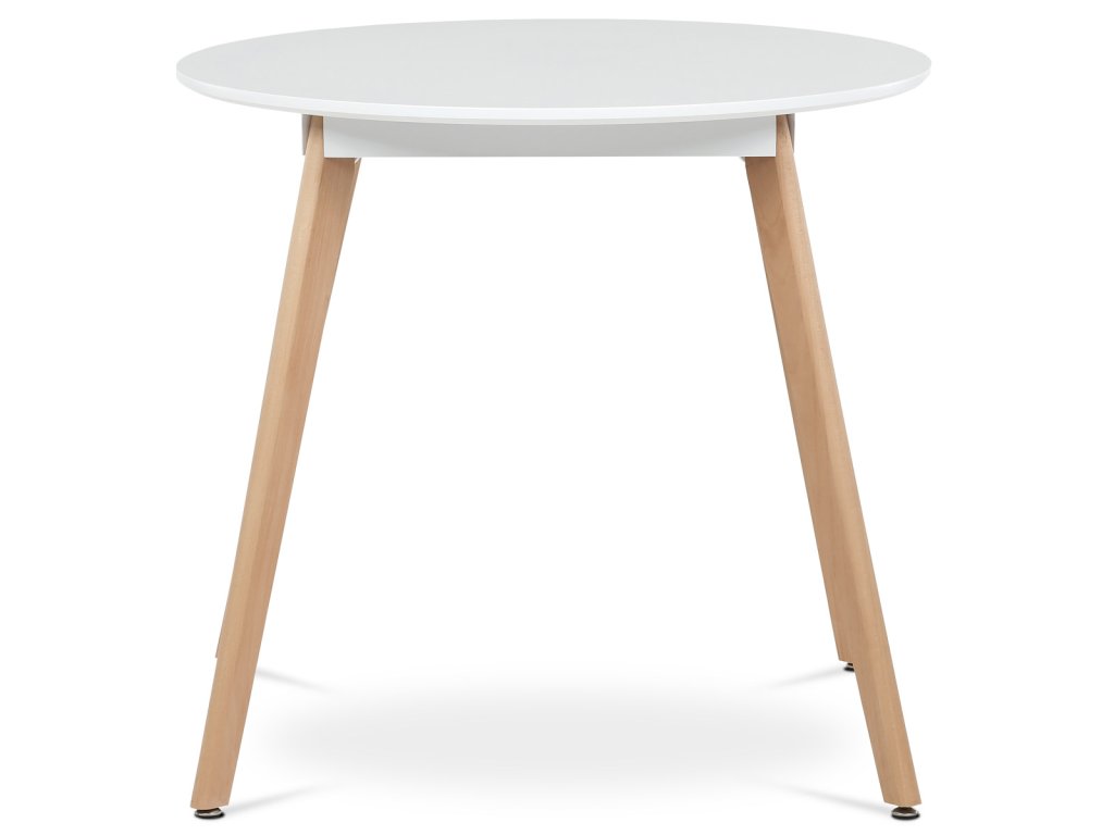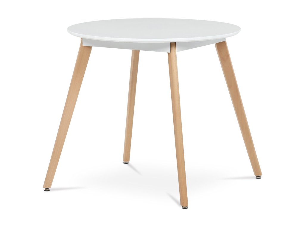 Stůl jídelní, 80x80x73 cm, MDF, masiv / kovová konstrukce, bílá DT-316 WT - Jídelní stůl s označením DT-316 WT nabízí kombinaci moderního designu a praktických vlastností. Deska stolu je vyrobena z MDF materiálu s matným bílým lakem, který zajišťuje snadnou údržbu a decentní vzhled. Masivní dřevěné nohy dodávají stabilitu a pevnost, přičemž jsou opatřeny rektifikačními patkami pro vyrovnání nerovností podlahy. Zaoblené rohy desky přispívají k bezpečnosti a současně podtrhují jemný designový detail. Stůl má rozměry 80x80x72,5 cm, což ho předurčuje k využití v menších jídelnách nebo kuchyňských koutech.Doplňkové parametry