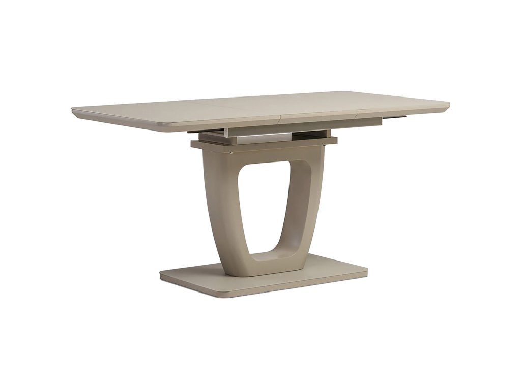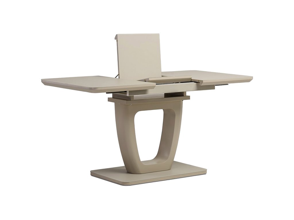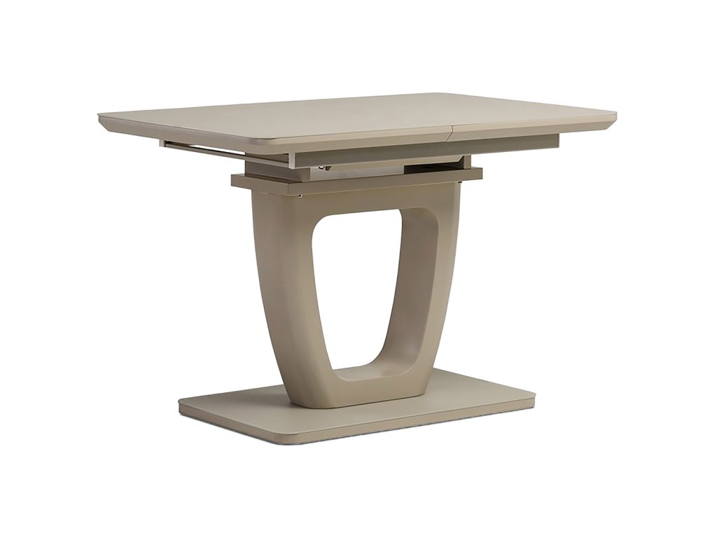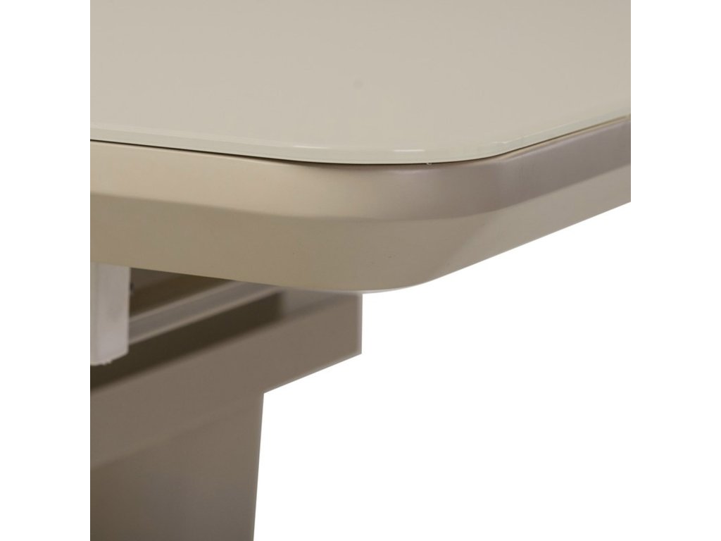 Stůl jídelní rozkládací, 110+40x76 cm, MDF, sklo, cappuccino HT-430 CAP - Jídelní stůl o rozměrech 110x75 cm s možností rozložení o dalších 40 cm nabízí praktické řešení pro větší počet stolujících. Deska je vyrobena z matného cappuccino skla o tloušťce 4 mm, které je snadno udržovatelné a odolné vůči běžnému opotřebení. Stabilní podnož i deska jsou z MDF materiálu v odstínu cappuccino mat, což dodává stolku moderní a zároveň příjemný vzhled. Rozkládací mechanismus je intuitivní a umožňuje rychlé zvětšení pracovní plochy bez nutnosti složité manipulace. Nosnost stolu odpovídá běžnému domácímu použití a jeho design je vhodný do moderních i klasických interiérů.Doplňkové parametry