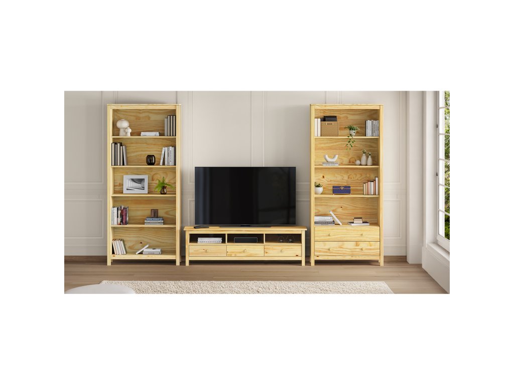 TV stolek TORINO - materiál masiv borovice, lakované provedení 3 zásuvky s kovovými pojezdyBuďte první, kdo napíše příspěvek k této položce.