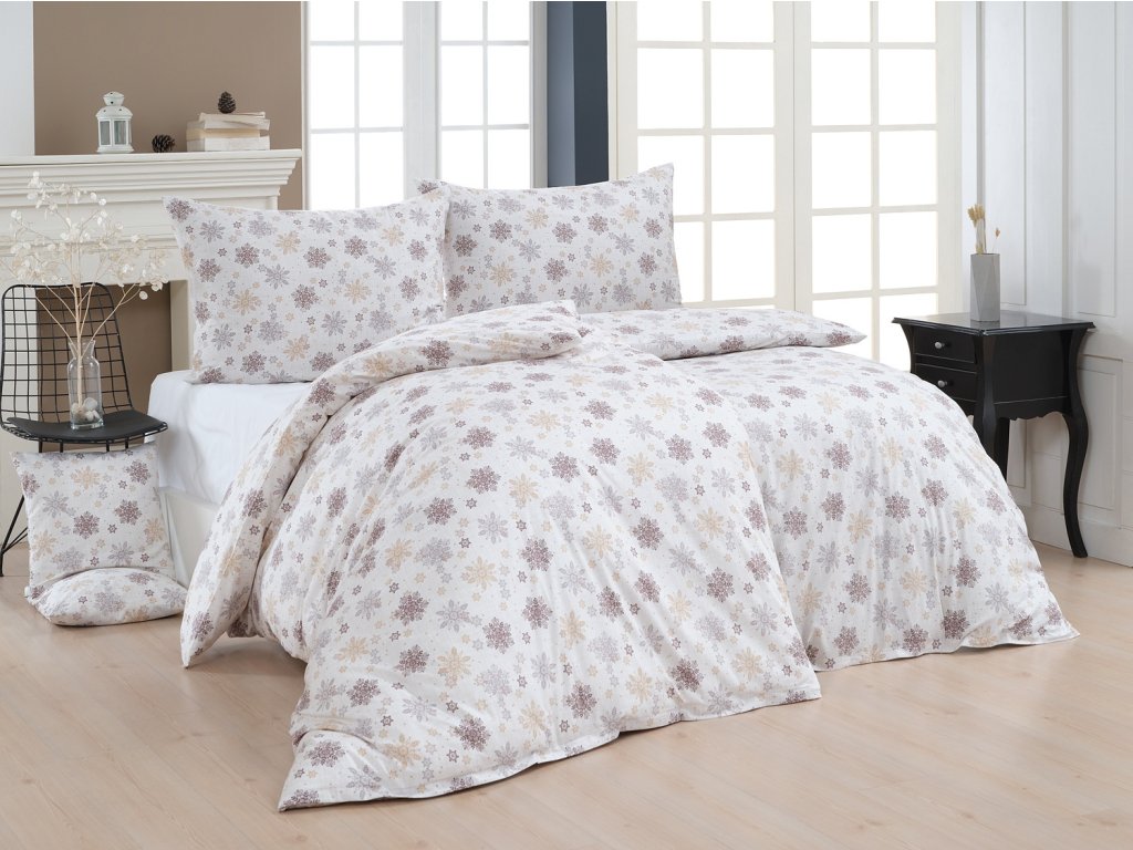 Winter Glow Bavlna deluxe 1x 140/220, 1x 70/90 - Vánoční povlečení Winter Glow se stane okouzlujícím svátečním klenotem vaší ložnice. Povlečení zdobí po celé ploše menší a větší sněhové vločky v paletě hnědých a šedých tónů. Na světlém podkladu je lehce patrná plátnová struktura, která dodává ložnímu povlečení rustikální nádech. Nechte se hýčkat a zachumlejte se do měkoučkého prémiového flanelu nebo do jemné bavlny deluxe. Materiál: 100% bavlna Povlak na polštář i na přikrývku je z obou stran stejný, povlečení je opatřeno komfortním zipovým uzávěrem. Povlaky na polštářky 40/40 cm se šijí ze stejné látky jako ložní povlečení, vzhledem k rozmanitosti vzoru může být každý povláček jiný.Doplňkové parametry