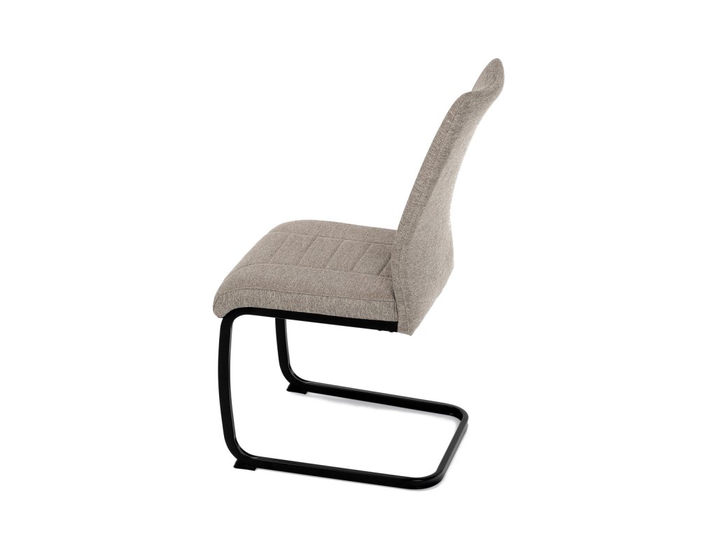 Židle jídelní, béžová látka, černé kovové nohy DCL-438 BR2 - Tato stylová jídelní židle přináší do Vašeho interiéru moderní eleganci a pohodlí. Je ideální volbou pro jídelny, kuchyně nebo pracovní prostory, kde se snoubí funkčnost s atraktivním designem. Židle je čalouněná jemnou hnědou látkou, která je měkká na dotek a odolná proti opotřebení. Ergonomický tvar a polstrované sedadlo spolu s pohupovou podnoží v černé barvě zajišťují díky lehkému pružení komfort při sezení. Ozdobné prošívání na opěradle dodává židli elegantní vzhled. Díky svému elegantnímu designu a neutrální hnědé barvě je tato židle vhodná do různých interiérů.Doplňkové parametry