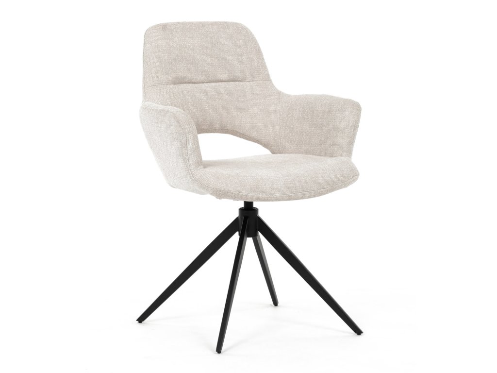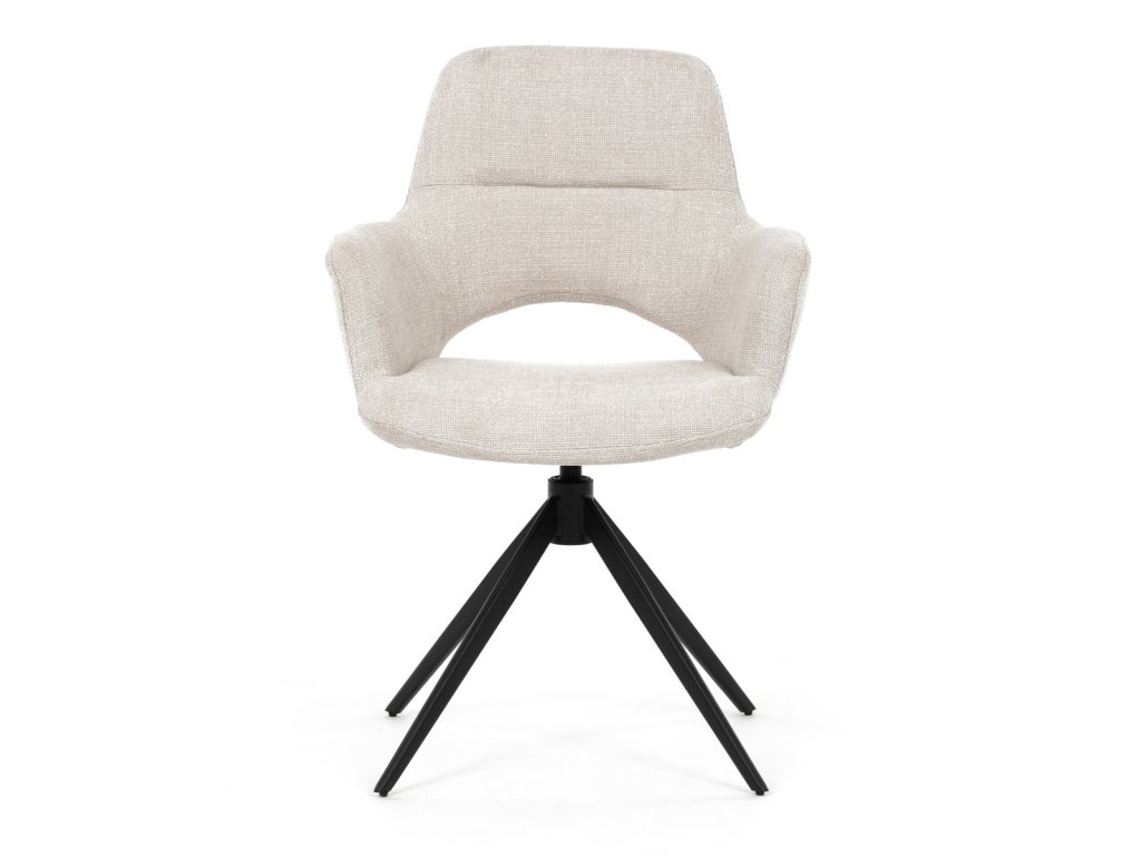 Židle jídelní, krémová látka, 360° vratný mechanismus, černý kov DCH-D1320 CRM2 - Elegantní jídelní židle značky Autronic v krémové barvě je ideální kombinací pohodlí a moderního designu. Čalounění z měkké látky s výplní z PU pěny zajišťuje komfortní sezení, zatímco černá kovová základna dodává židli stabilitu a stylový vzhled. Vratný otočný mechanismus 360° umožňuje snadné otáčení a automatické vrácení do původní polohy. Židle je vybavena praktickými područkami, které zvyšují pohodlí při sezení. Perfektní volba pro každou jídelnu, která hledá stylový a praktický doplněk.Doplňkové parametry