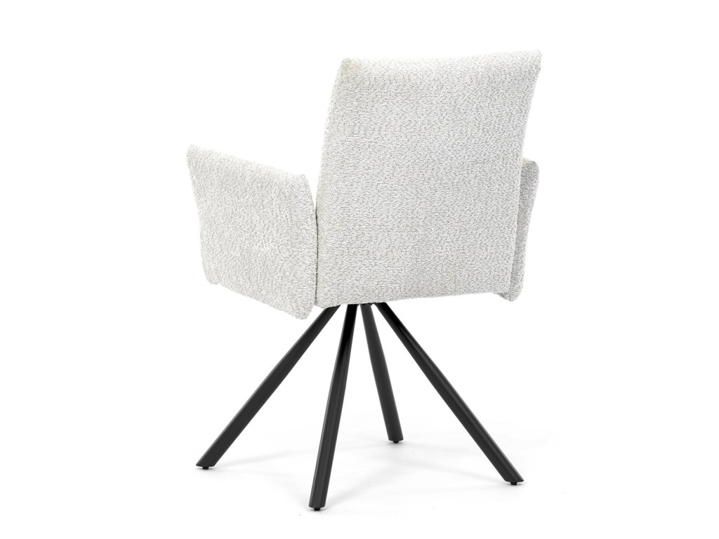 Židle jídelní, krémová látka, černý kov, otočný mechanismus 90°/90° (L/P) - funkce reset DCH-W1117 CRM2 - Tato moderní jídelní židle značky Autronic v industriálním stylu kombinuje pohodlí s funkčností. Otočná židle s robustní kovovou podnoží je vybavena pohodlnými područkami a látkou Bouclé, která zajišťuje příjemný a stylový vzhled. Polstrování z PU pěny nabízí měkké sezení, zatímco otočný mechanismus L90°/P90° s funkcí automatického vracení sedáku do základní polohy umožňuje snadné otáčení pro maximální flexibilitu. Černá kovová centrální podnož dodává židli stabilitu a moderní vzhled. Tato židle je ideální pro elegantní jídelny, kde se kombinuje komfort s moderním designem.Doplňkové parametry