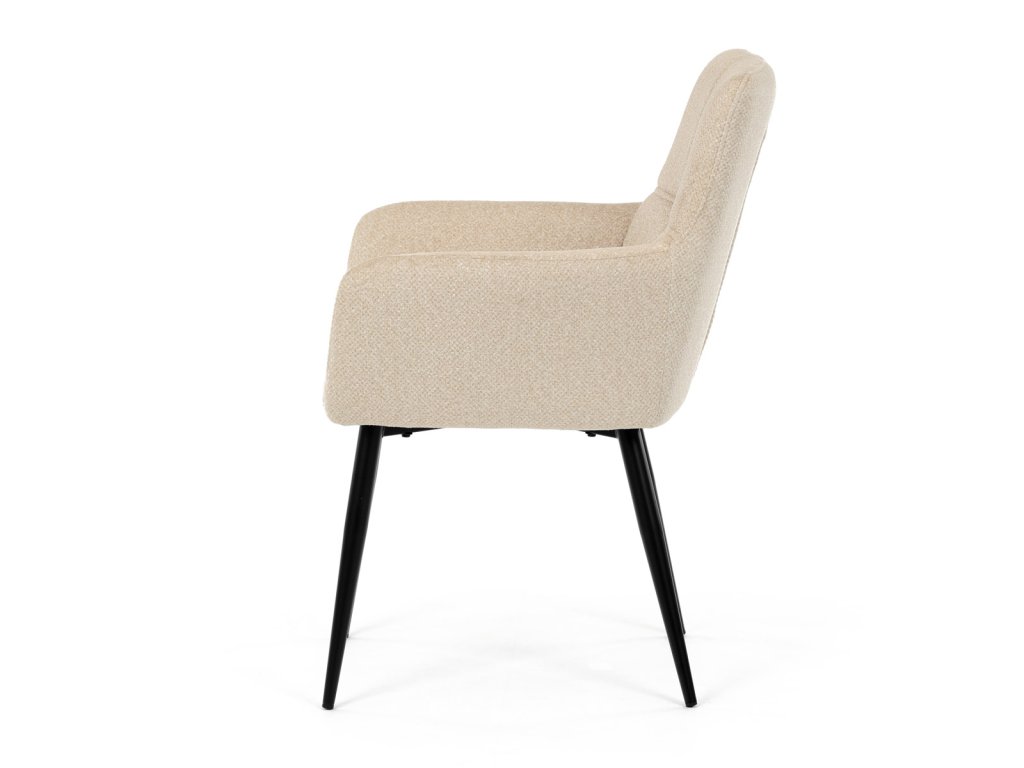 Židle jídelní, krémová látka, černý kov DCH-P3146 CRM2 - Elegantní krémová jídelní židle od značky Autronic skvěle doplní moderní i klasické interiéry. Tato stylová židle nabízí vysoký komfort díky čalounění z kvalitní látky a mekkému sedáku z PU pěny. Černé kovové nohy zajišťují stabilitu a dodávají židli jemný industriální nádech. Komfortní područky a ergonomické provedení oceníte při každém posezení. Židle se hodí nejen do domácí jídelny, ale i do restauračních prostor, kde vytvoří útulnou atmosféru.Doplňkové parametry
