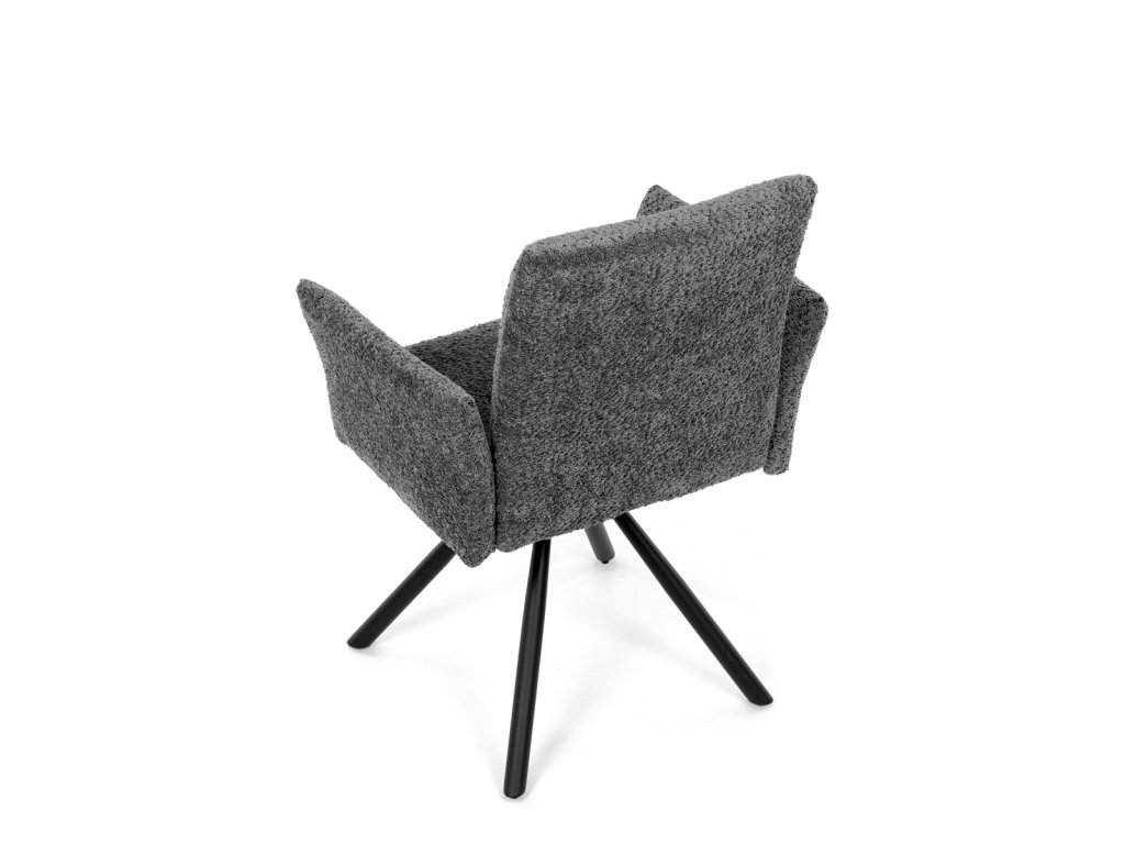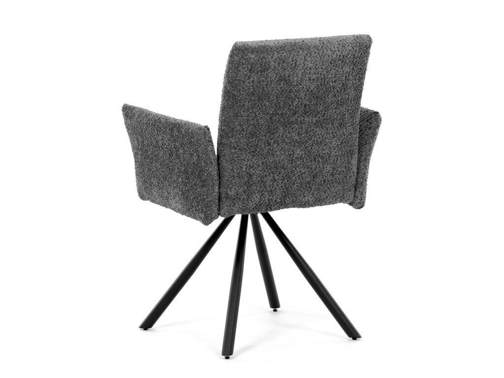 Židle jídelní, šedá látka, černý kov, otočný mechanismus 90°/90° (L/P) - funkce reset DCH-W1117 GREY2 - Tato moderní jídelní židle značky Autronic v industriálním stylu kombinuje pohodlí s funkčností. Otočná židle s robustní kovovou podnoží je vybavena pohodlnými područkami a látkou Bouclé, která zajišťuje příjemný a stylový vzhled. Polstrování z PU pěny nabízí měkké sezení, zatímco otočný mechanismus L90°/P90° s funkcí automatického vracení sedáku do základní polohy umožňuje snadné otáčení pro maximální flexibilitu. Černá kovová centrální podnož dodává židli stabilitu a moderní vzhled. Tato židle je ideální pro elegantní jídelny, kde se kombinuje komfort s moderním designem.Doplňkové parametry