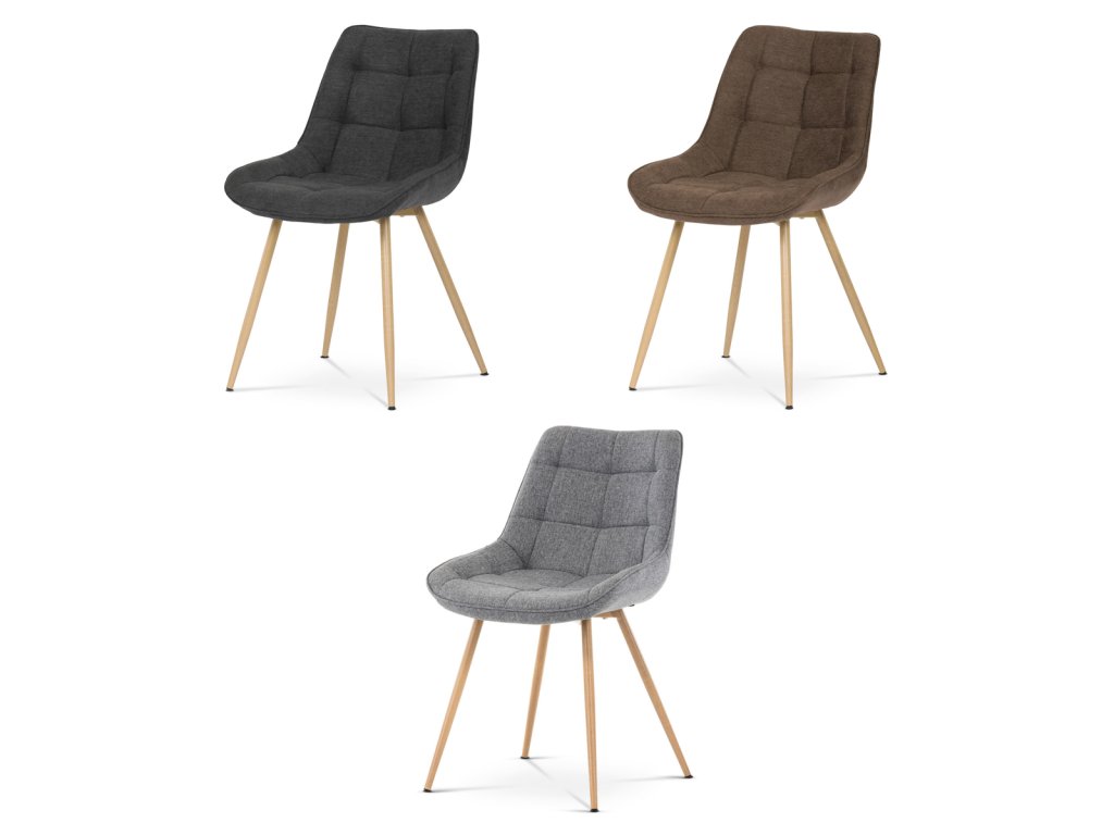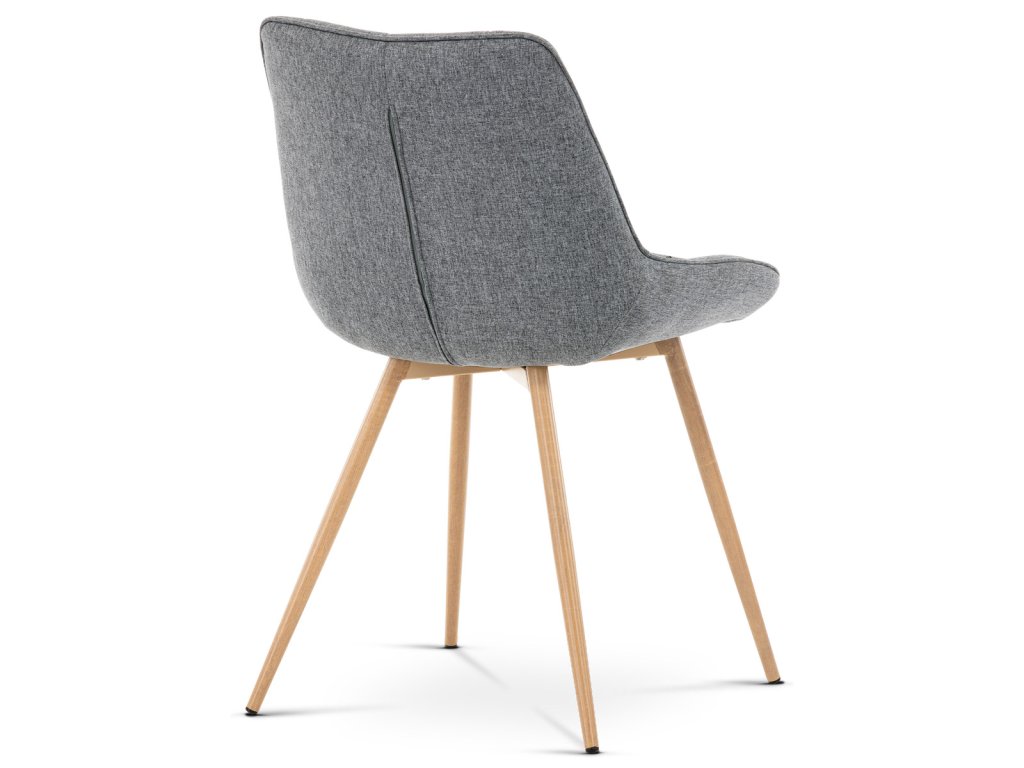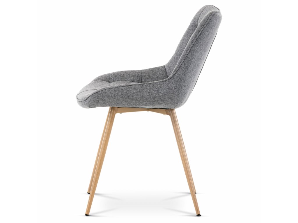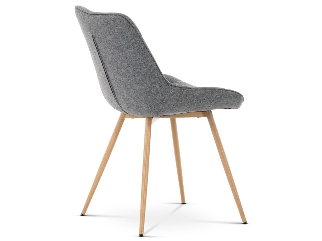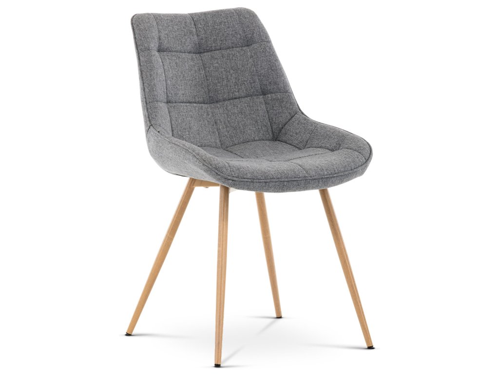 Židle jídelní, šedá látka, kovové nohy, 3D dekor dub CT-394 GREY2 - Jídelní židle CT-394 GREY2 kombinuje moderní design s pohodlím díky čalounění v šedé látce s výrazným designovým prošitím, které zdůrazňuje tvarované sedadlo a opěradlo. Pevné kovové nohy v dekoru dubu zajišťují stabilitu a dlouhou životnost, přičemž jejich povrchová úprava dodává židli přírodní vzhled. Židle nemá područky ani otočný mechanismus, což ji činí praktickou a snadno umístitelnou do různých prostorů. Ergonomicky tvarované sedadlo podporuje pohodlné sezení při jídelních aktivitách. Díky kvalitnímu zpracování a použitým materiálům je židle vhodná pro každodenní použití v domácnostech i komerčních prostorách.Doplňkové parametry