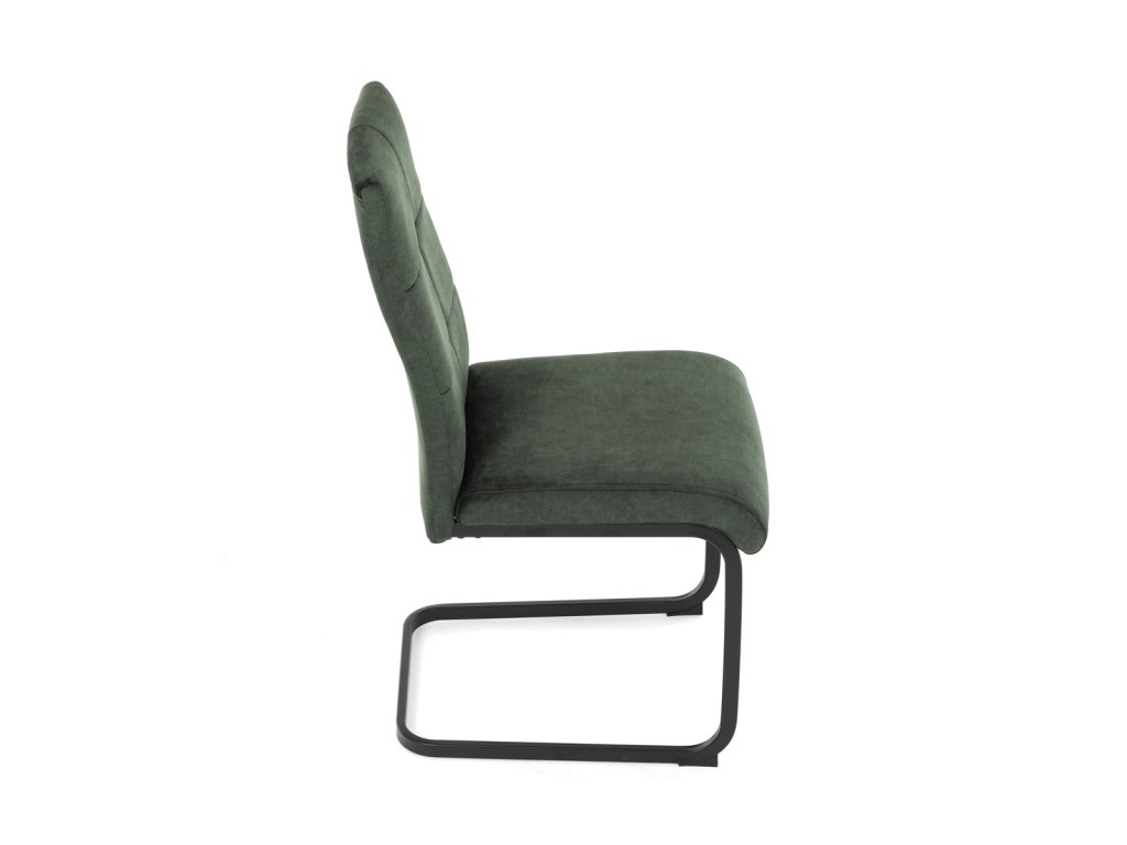 Židle jídelní, zelený samet, černá pohupová podnož DCL-D1275 GRN4 - Moderní jídelní židle značky Autronic v zelené barvě zaujme svým elegantním designem a kvalitním matným sametovým čalouněním, které je příjemné na dotek. Pohupová podnož z černého kovu dodává stabilitu a současně stylový vzhled. Ergonomicky tvarované sedadlo a opěradlo zaručují pohodlí i při delším sezení. Tato židle je ideální volbou do moderních interiérů, kde přispěje k vytvoření sofistikované a útulné atmosféry. Perfektní spojení funkčnosti a designu pro vaši jídelnu.Doplňkové parametry